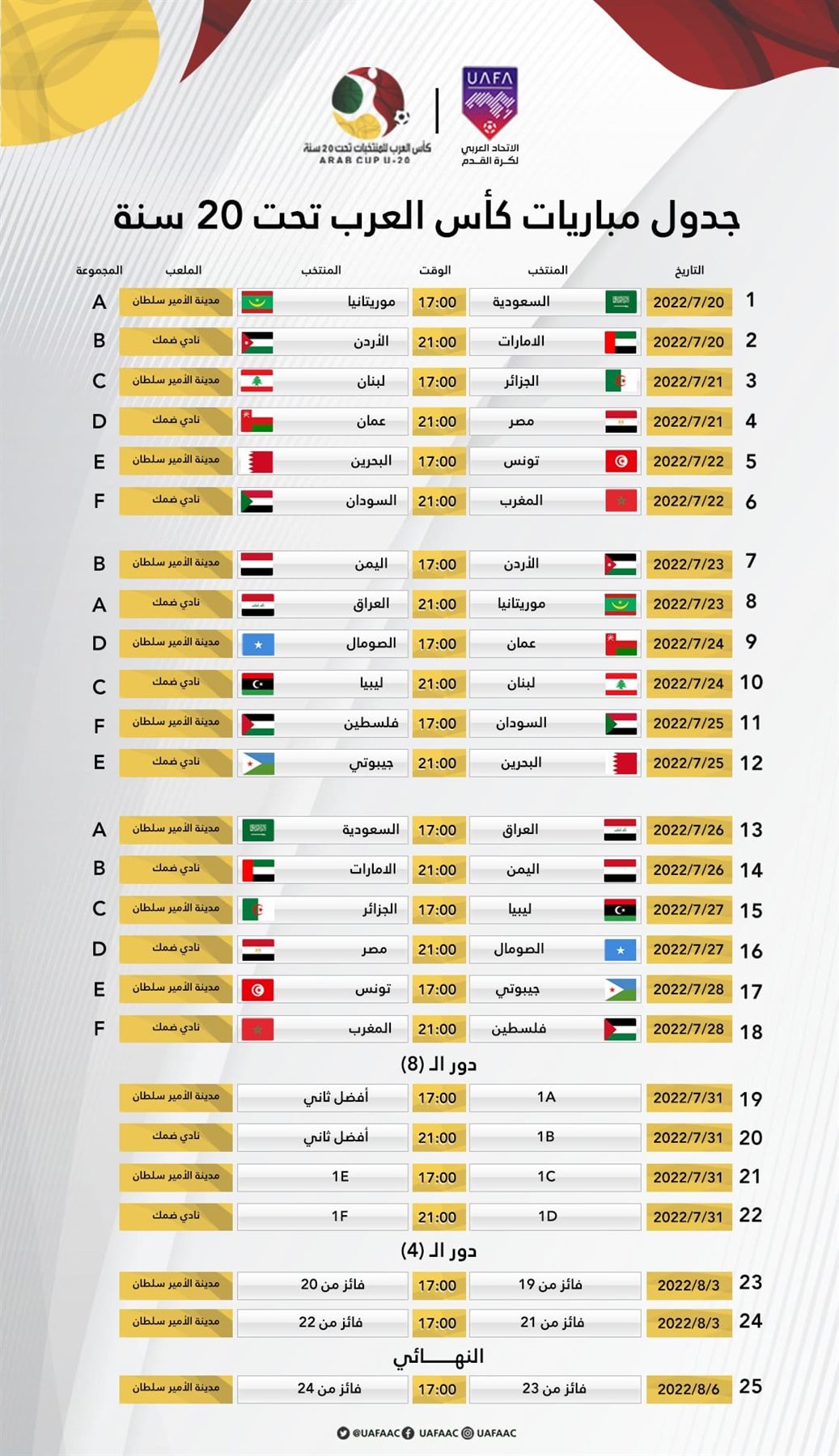 جدول مباريات كأس العرب
