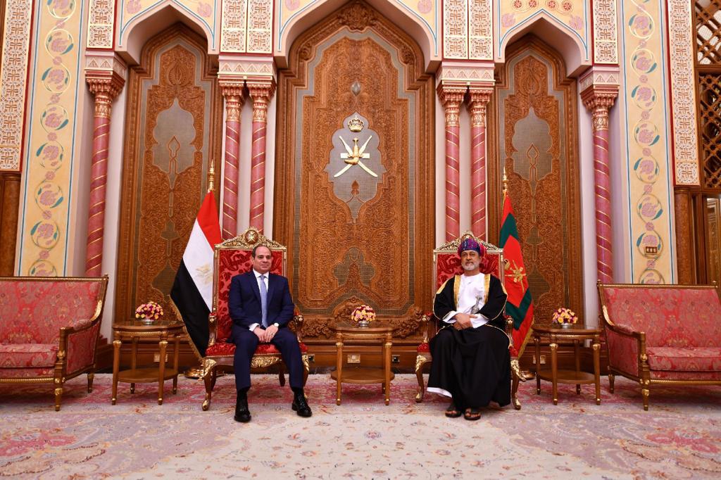 وصرح السفير بسام راضي المتحدث الرسمي باسم رئاسة الجمهورية بأن الرئيس وجلالة السلطان هيثم بن طارق عقدا مباحثات منفردة، حيث ثمن السلطان هيثم بن طارق الدور المصري البارز في تعزيز آليات العمل العربي المُشترك في مواجهة الأزمات والتحديات الراهنة بالمنطقة، والذي يعد نموذجًا يحتذى به في الحفاظ على الاستقرار والنهوض بالأوضاع التنموية والاقتصادية والاجتماعية في الوطن العربي.