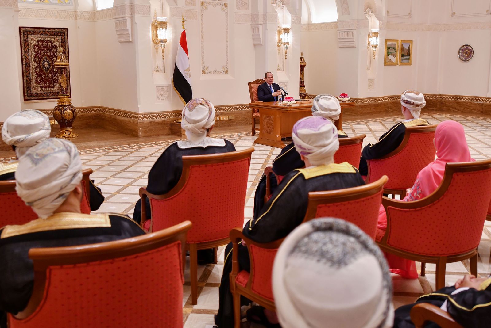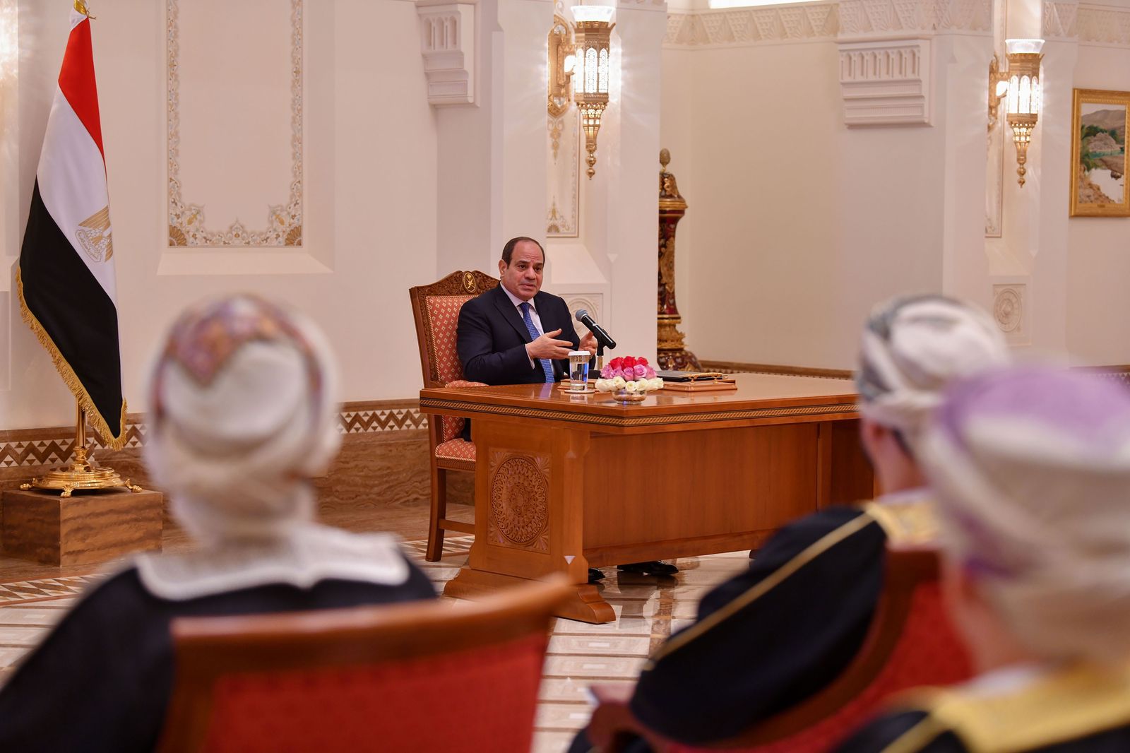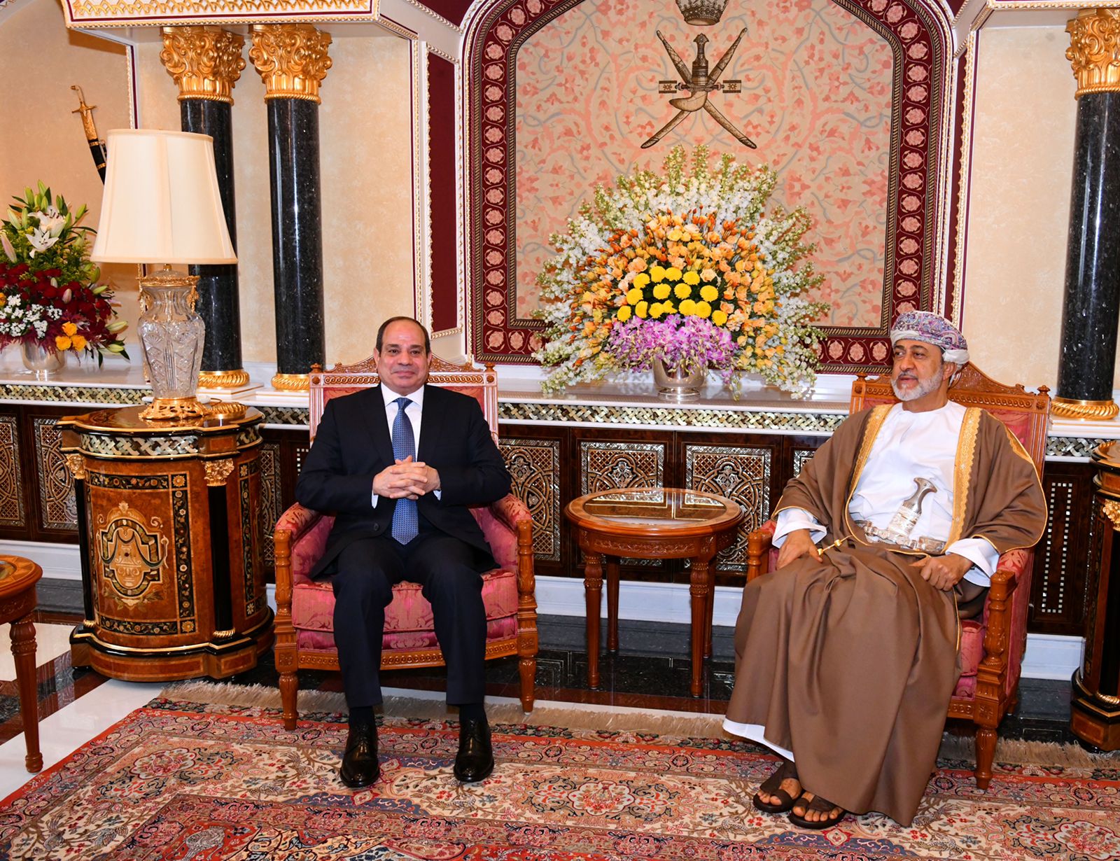 كما ثمن الرئيس مستوى التنسيق القائم ووحدة الرؤى بين البلدين الشقيقين حول القضايا ذات الاهتمام المتبادل، إلى جانب التوافق العماني المصري إزاء كافة القضايا الاقليمية والدولية.