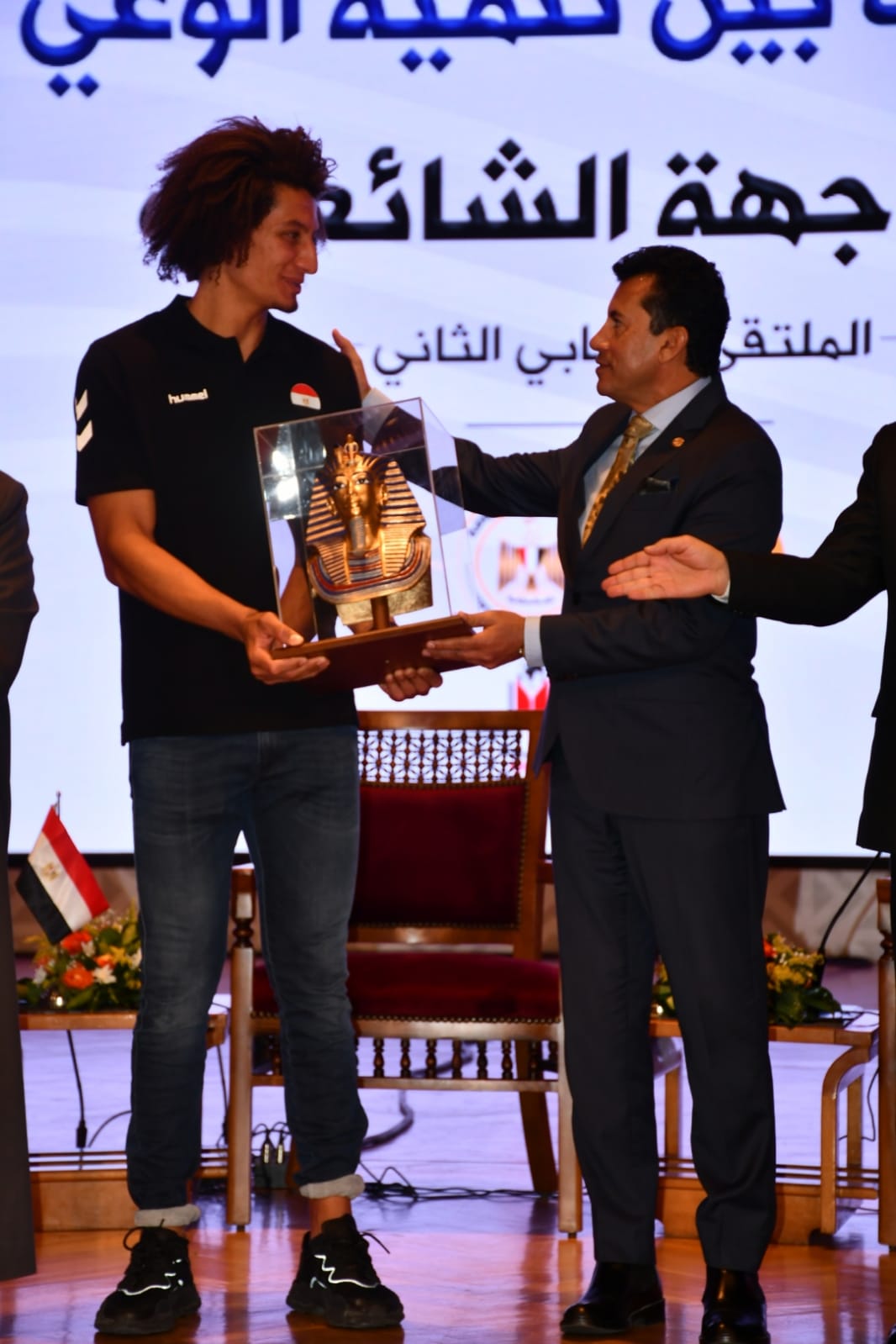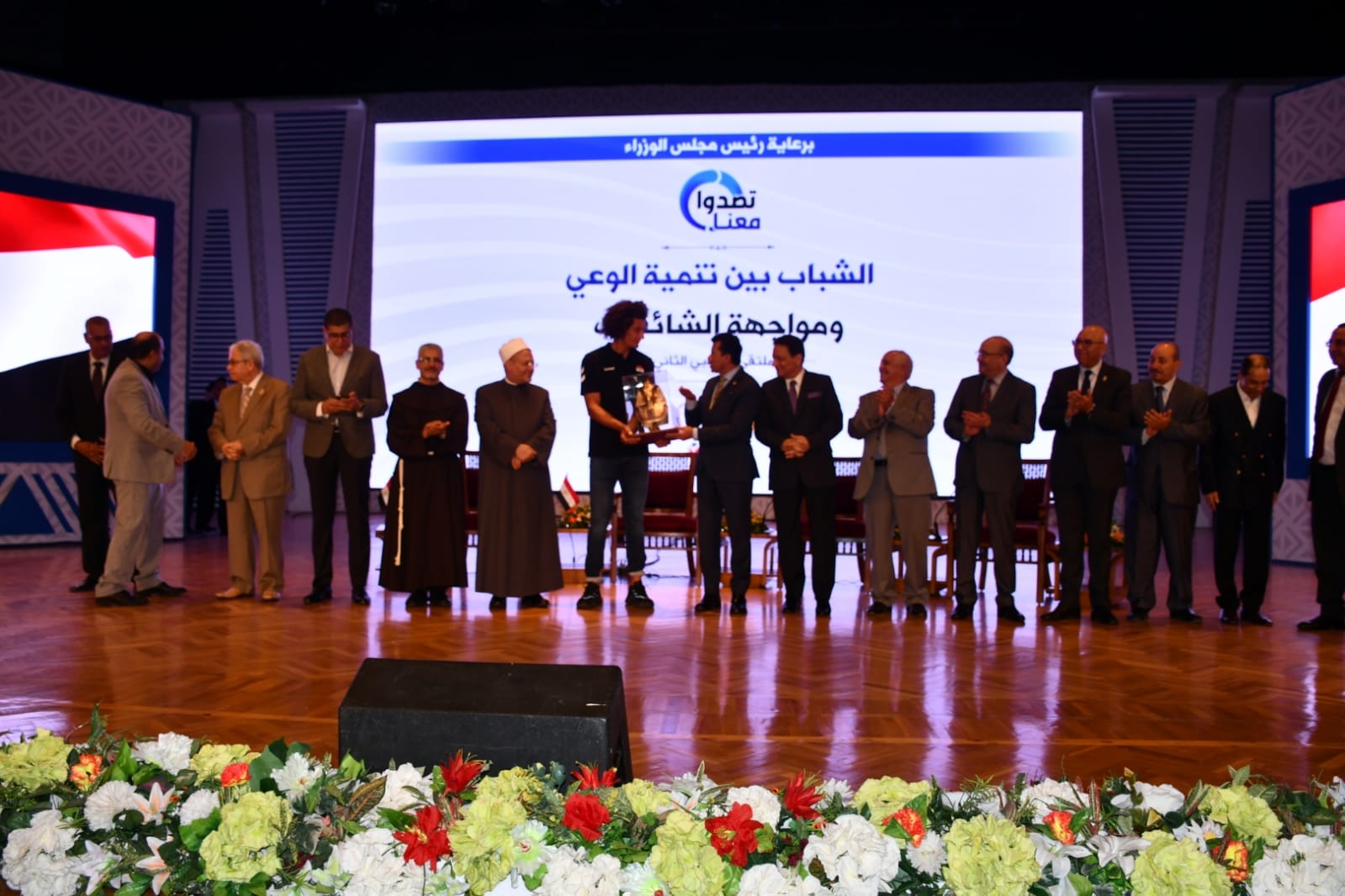 أقيم الحفل في مسرح وزارة الشباب والرياضة، على هامش ندوة “الشباب بين تنمية الوعي ومواجهة الشائعات”، بحضور الدكتور شوقي علام مفتي الجمهورية، والكاتب الصحفي كرم جبر رئيس المجلس الأعلى لتنظيم الإعلام، والأب بطرس دانيال رئيس المركز الكاثوليكي للسينما، والناقد الرياضي حسن المستكاوي، والكاتب الصحفي علاء ثابت.