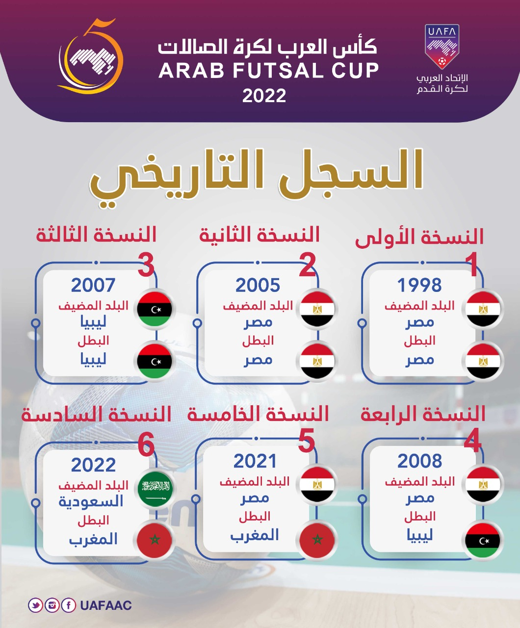 وتعد بطولة كأس العرب لكرة الصالات هي الثانية على التوالي لمنتخب المغرب، وصعد أسود أطلس للنهائي على حساب المنتخب الوطني للصالات.