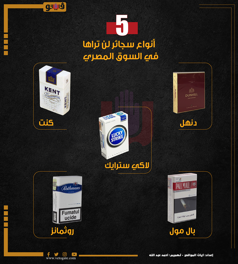 5 أنواع سجائر لن تراها في السوق المصري | إنفوجراف الأربعاء 29/يونيو/2022 - 06:09 م 6/29/2022 6:09:27 PM 5 أنواع سجائر لن تراها في السوق المصري آيات الموافى شارك طباعة 18 حجم الخط شارك طباعة دنهل كنت بال مول روثمانز لاكي سترايك