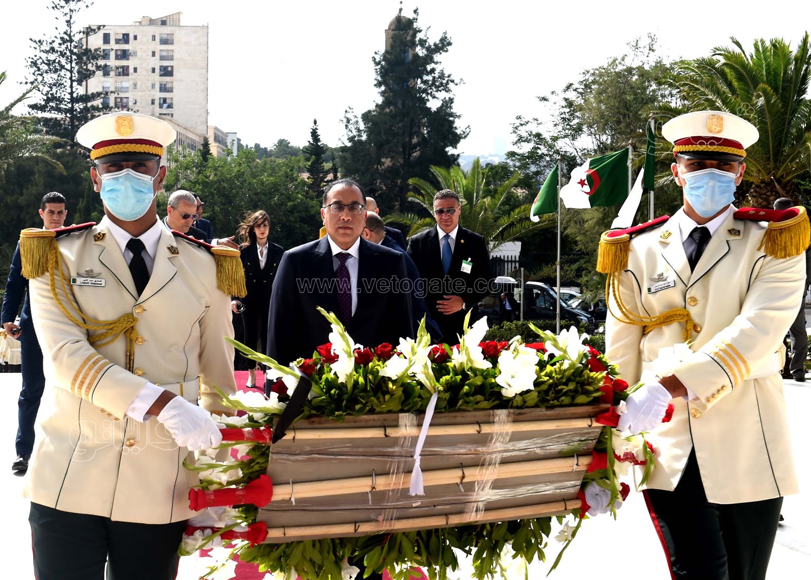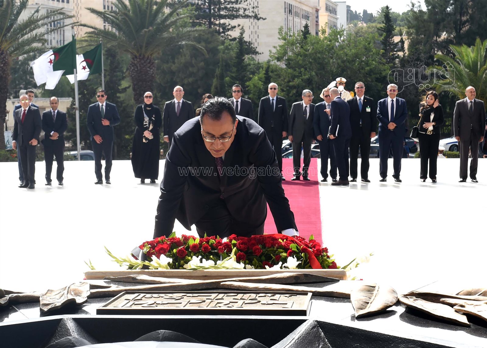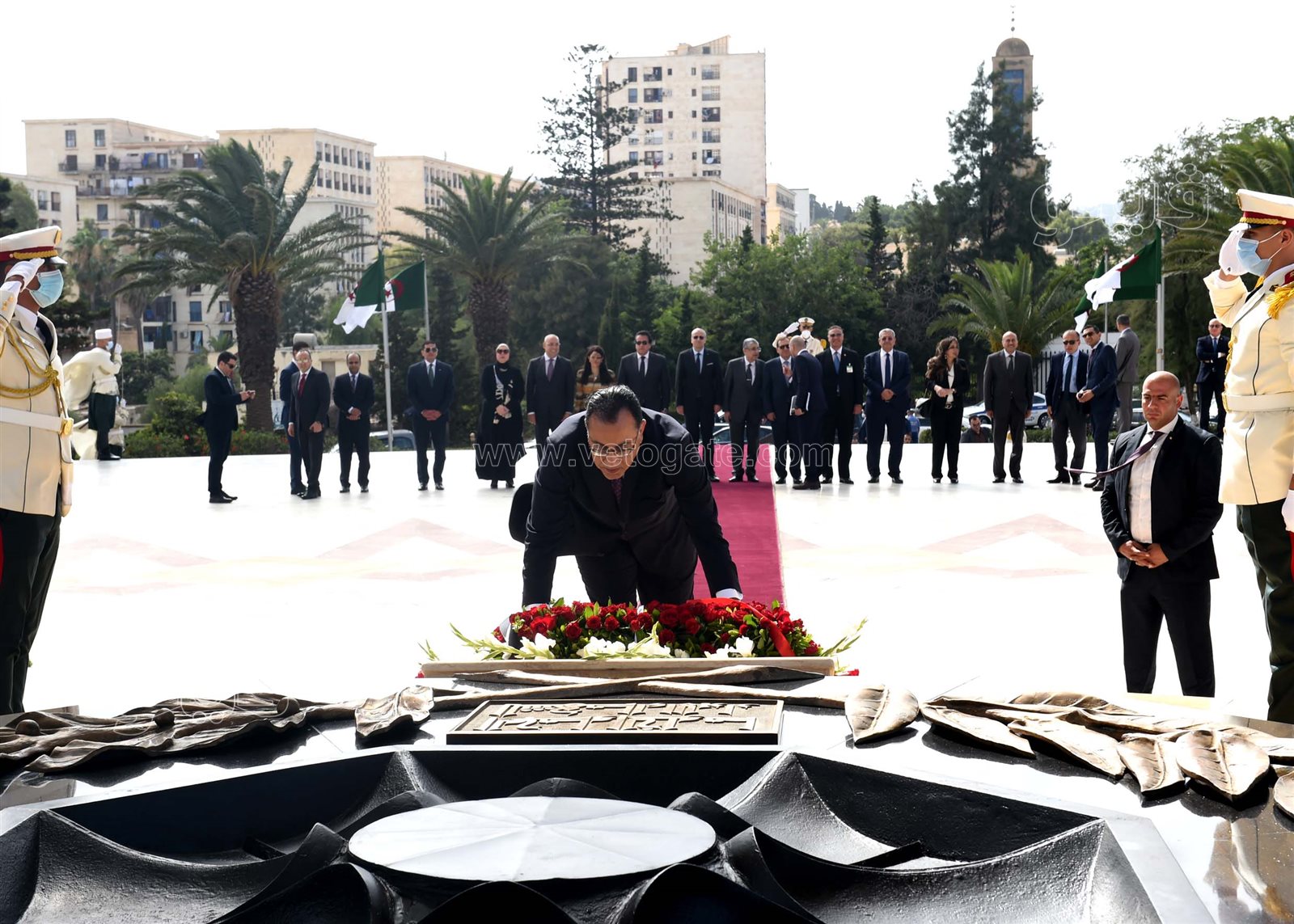 عقب انتهاء مراسم الاستقبال في مطار هواري بومدين الدولى، بالعاصمة الجزائرية، توجه الدكتور مصطفى مدبولي، رئيس مجلس الوزراء، لزيارة "مقام الشهيد" بمدينة الجزائر ووضع إكليلًا من الزهور تكريما لأرواح شهداء الجزائر الأبرار.