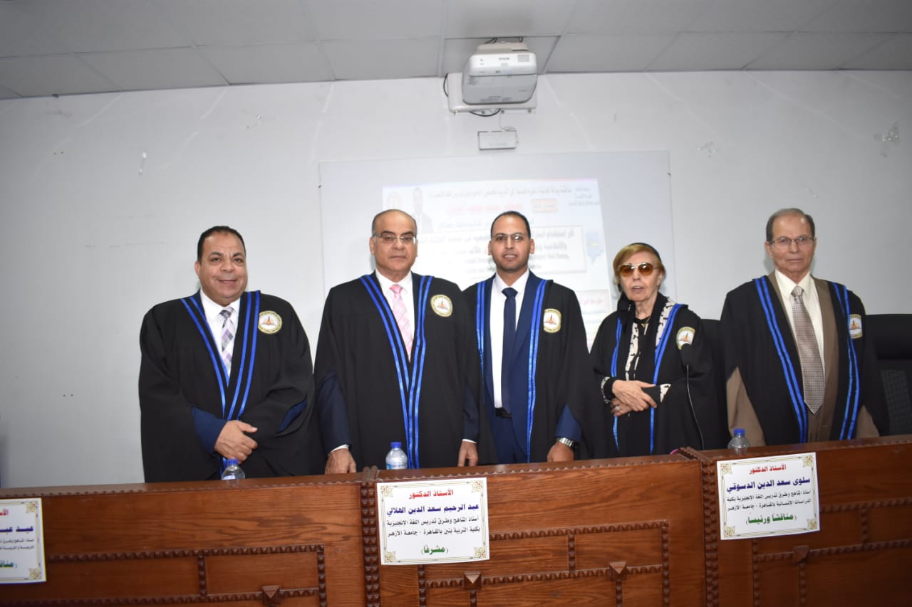 نافشت كلية التربية جامعة الأزهر بالقاهرة أمس رسالة الدكتوراه الفلسفة المقدمة من الباحث مصطفى محمد محمد العسال المدرس المساعد بقسم المناهج وطرق التدريس باللغة الإنجليزية والتي كانت بعنوان أثر استخدام إستراتيجيات الدراما التعليمية في تنمية الطلاقة الشفهية والإفهامية وخفض رهبة التحدث لدى طلاب شعبة اللغة الانجليزية، وقد تم منح الباحث درجة الدكتوراه بتقدير مرتبة الشرف الأولى.