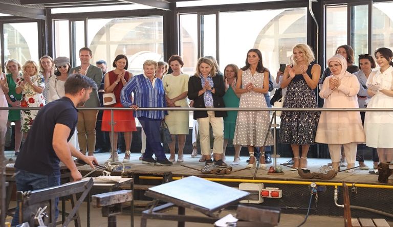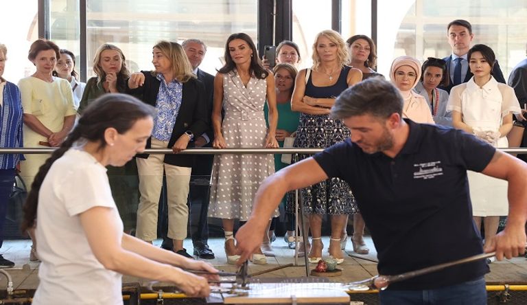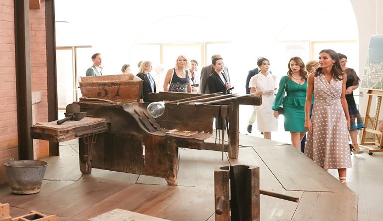 وامتدت الزيارة لتشمل مصنع الزجاج الملكي في لا جرانجا ومتحف رينا صوفيا؛ حيث اضطلعت زوجات القادة على طرق صناعة الزجاج بصورة أذهلتهن.