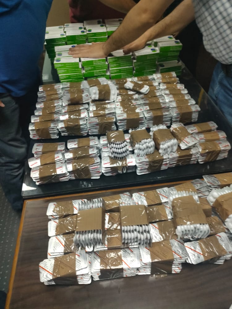 وتم تشكيل لجنة من سماح عواد مدبولي ومحمد عبد المنعم ورامي رمضان إبراهيم لفتح الطرود ومعاينتها فتبين وجود 954 شريطا بها 9540 قرص يشتبه أن تكون لمادة مخدرة و162 علبة أدوية بشرية مخبأة داخل علب المأكولات الجافة.
