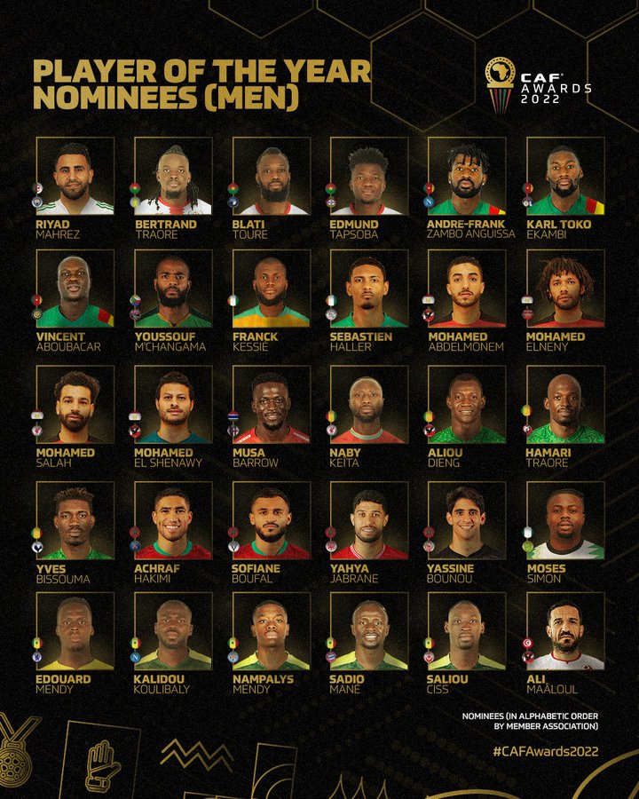 أعلن الاتحاد الأفريقي لكرة القدم “الكاف” عن أسماء المرشحين لجائزة أفضل لاعب في أفريقيا لعام 2022.
