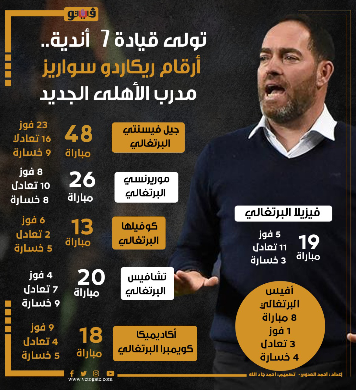 تولى قيادة 7 أندية.. أرقام ريكاردو سواريز مدرب الأهلى الجديد | إنفوجراف الخميس 30/يونيو/2022 - 10:00 م 6/30/2022 10:00:19 PM ريكاردو سوايرز أحمد العدوي شارك طباعة 18 حجم الخط شارك طباعة ريكاردو سوايرز الأهلي اخبار الأهلي اخبار الرياضة الاهلي اليوم