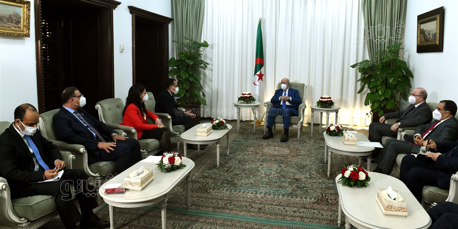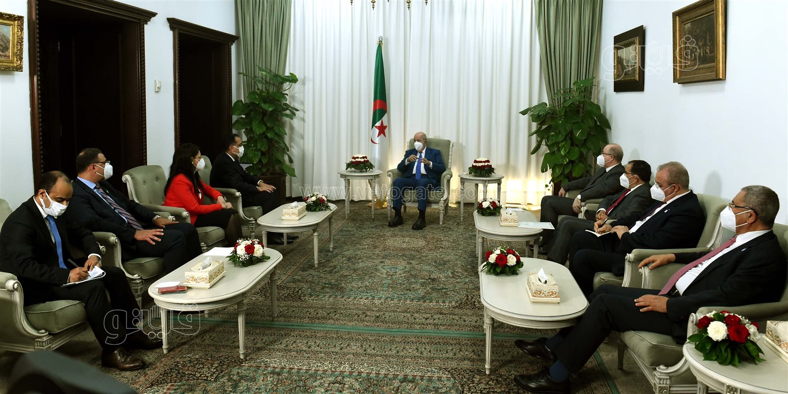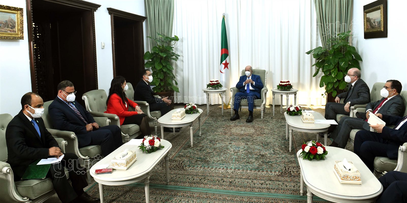 استقبل الرئيس الجزائرى، عبد المجيد تبون، اليوم بقصر الرئاسة، الدكتور مصطفى مدبولى، رئيس مجلس الوزراء، بحضور أيمن بن عبد الرحمان، الوزير الأول للجمهورية الجزائرية، والدكتورة رانيا المشاط، وزيرة التعاون الدولى، والسفير مختار وريدة، سفير مصر لدى الجزائر.