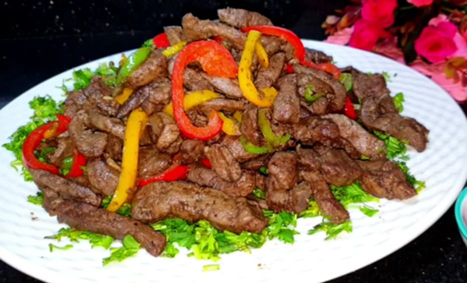 نصف كيلو كبدة بلدي مقطعة شرائح ويفضل تقطيعها عند الجزار