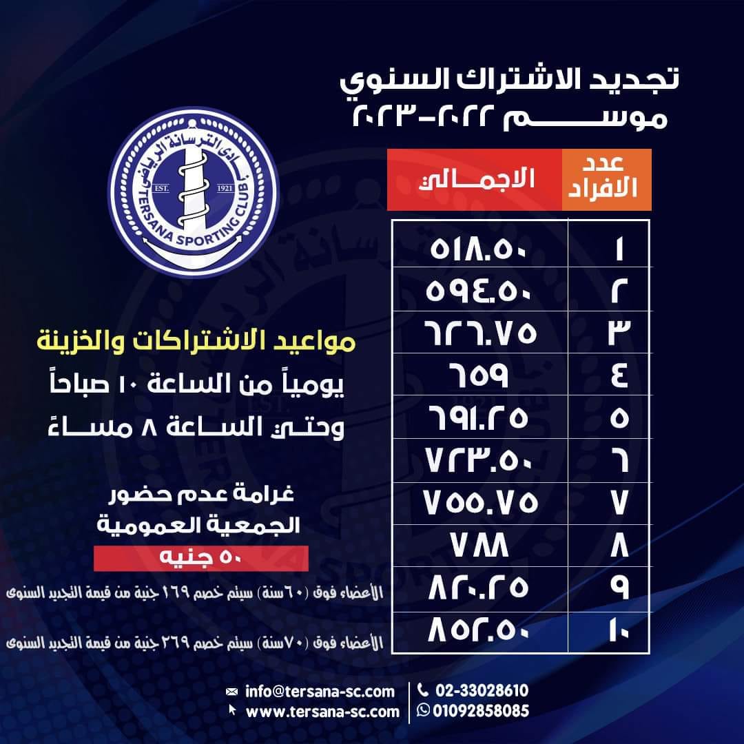 ونشر نادي الترسانة عبر صفحته علي موقع التواصل الاجتماعي فيس بوك، قيمة تجديد الاشتراك السنوي للأعضاء.