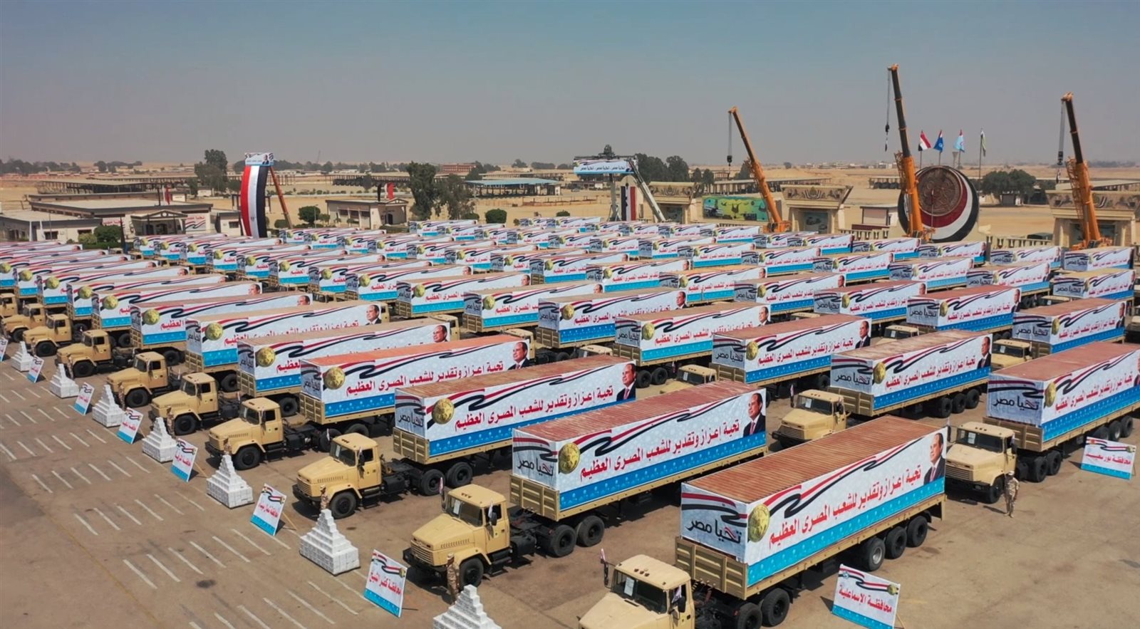 إلى أبناء القرى والتجمعات السكانية الأكثر احتياجا على مستوى الجمهورية، حيث تم تسيير أسطول من شاحنات النقل المجهزة وقطارات السكة الحديد لكافة المحافظات.