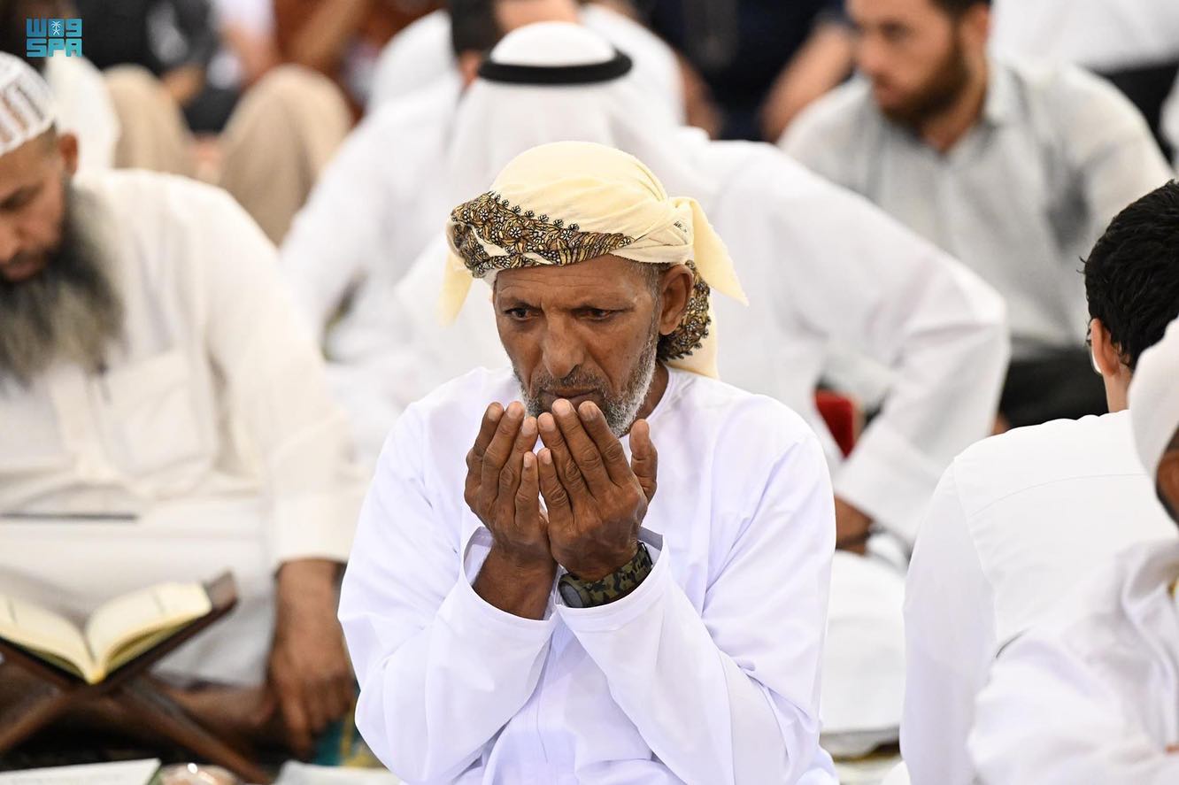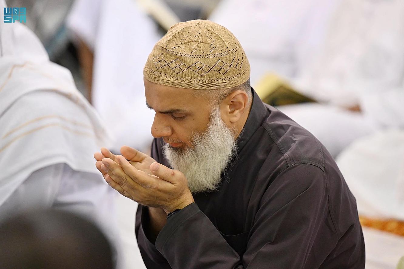 وظهر خلال الصور التي نشرتها وكالة الأنباء، حجاج بيت الله الحرام يرفعون أكف الضراعة إلى الله داخل المسجد النبوي، بالإضافة إلى قراءة القرأن.