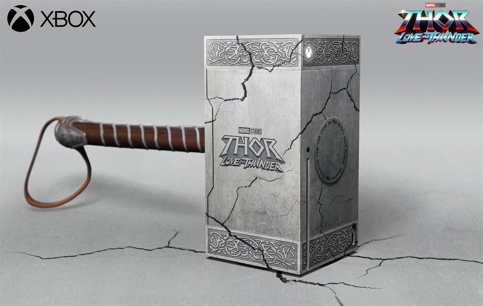 قالت تقارير إنه تم إطلاق إصدار خاص من جهاز Xbox Series X لفيلم مارفل الجديد Thor Love And Thunder وهو تصميم مستوحى من مطرقة ثور الشهيرة، وذلك بالتزامن مع عرض الفيلم في دور العرض.