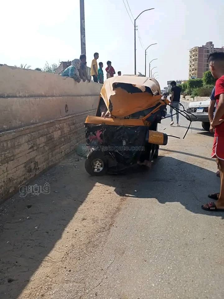 مصرع وإصابة 3 أشخاص في تصادم سيارة ملاكي مع "توك توك"بالشرقية|صور
