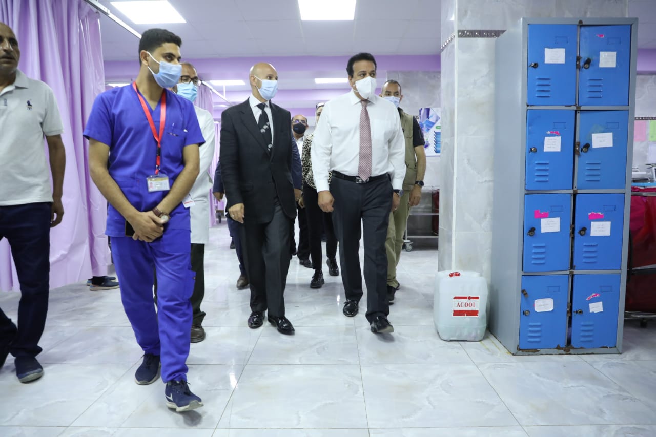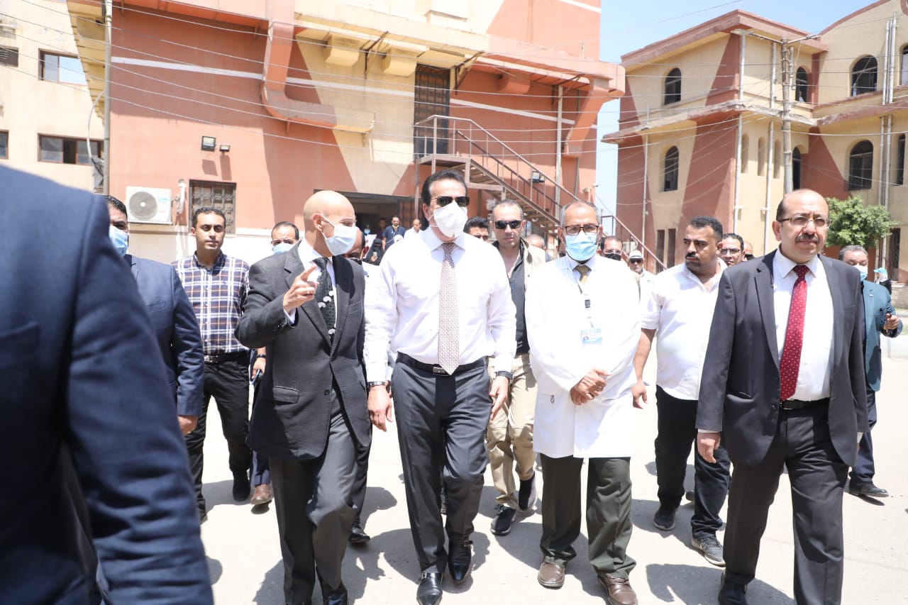 ورافق الوزير خلال زيارته، الدكتور أنور إسماعيل مساعد وزير الصحة لشئون المشروعات القومية، والدكتور حازم الفيل رئيس قطاع الطب العلاجي، والدكتور هشام مسعود وكيل وزارة الصحة بمحافظة الشرقية.