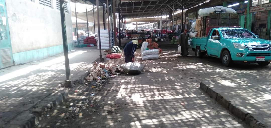 رفع المخلفات من محلات وشوادر سوق الجملة بأكتوبر | صور