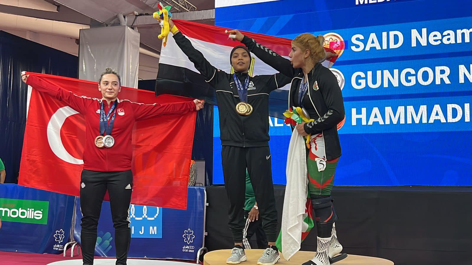 - نعمة سعيد ذهبية وزن 71 كجم في الكلين رفع أثقال