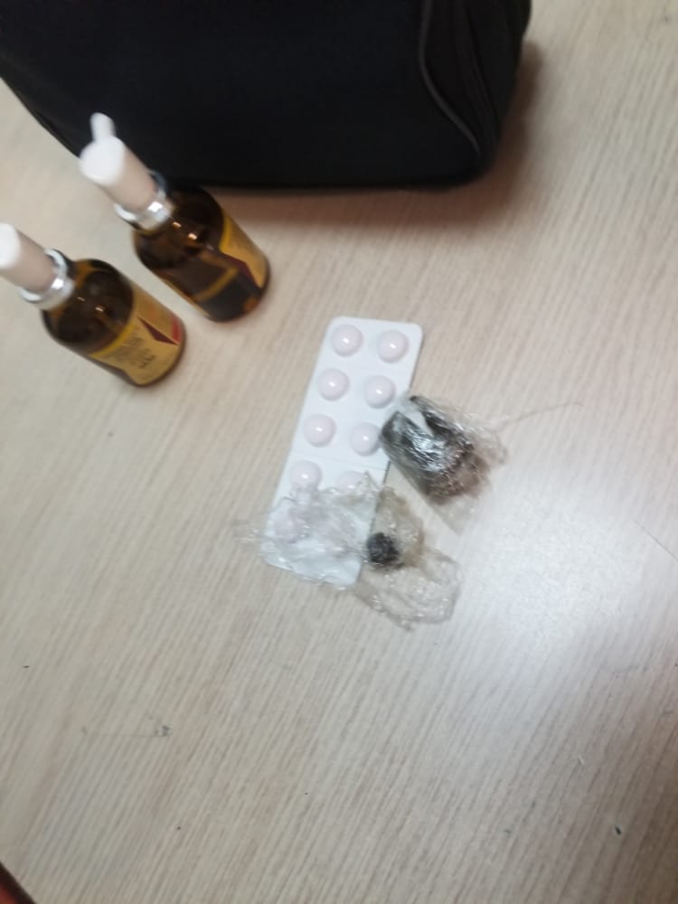 وبتفتيش حقائبه على جهاز الفحص بالأشعة بواسطة عماد جاب الله والذي تلاحظ له وجود شرائط دوائية، قام حازم محمد علي مدير الحركة المشرف على الصالة بتكليف أحمد عادل فتحي مأمور الجمرك بتفتيش حقائب الراكب يدويًّا؛ مما أسفر عن ضبط ٢٠ شريطًا من العقاقير المدرجة بجداول المخدرات، و٤ زجاجات بها سائل الكونترمال المخدر.