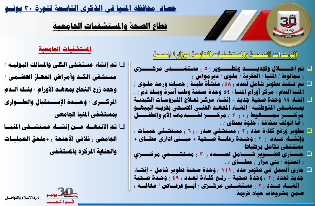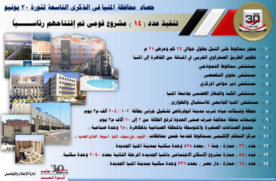 9 سنوات.. حصاد 30 يونيو في محافظة المنيا | صور
