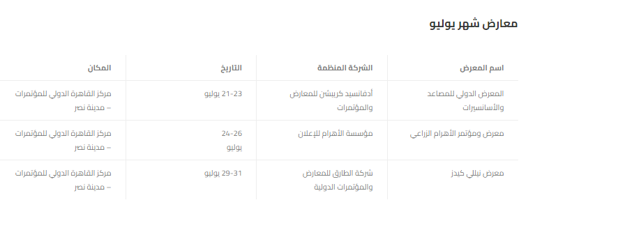 وننشر خريطة المعارض الداخلية خلال شهر يوليو: