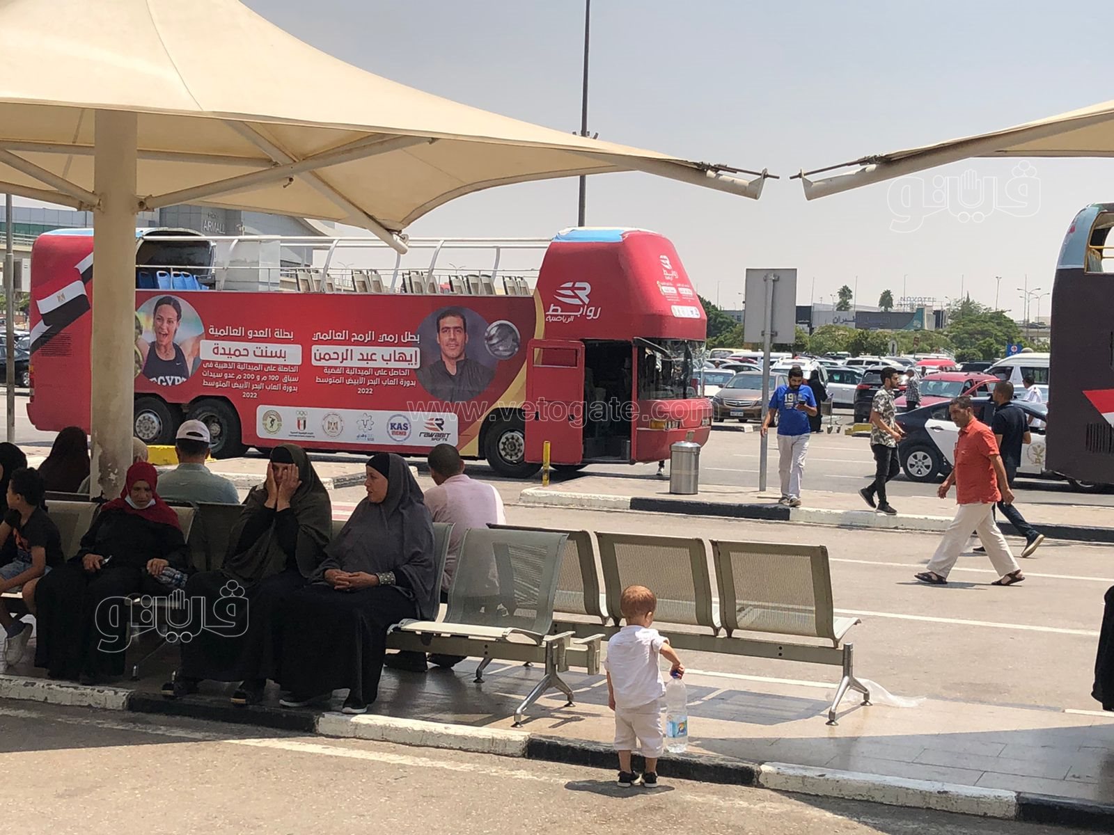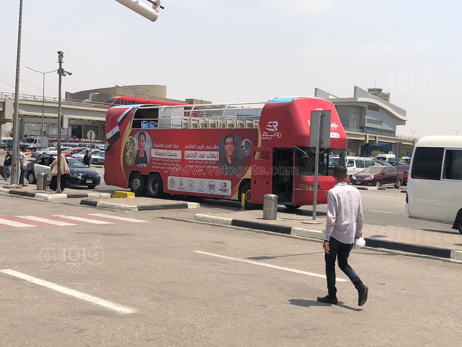 ويتواجد أتوبيس خاص مكشوف أمام صالة الوصول بمبني الركاب رقم 1 بمطار القاهرة لصعود أبطال ألعاب القوي فور خروجهم من المطار، عقب وصولهم علي متن الخطوط الجزائرية.