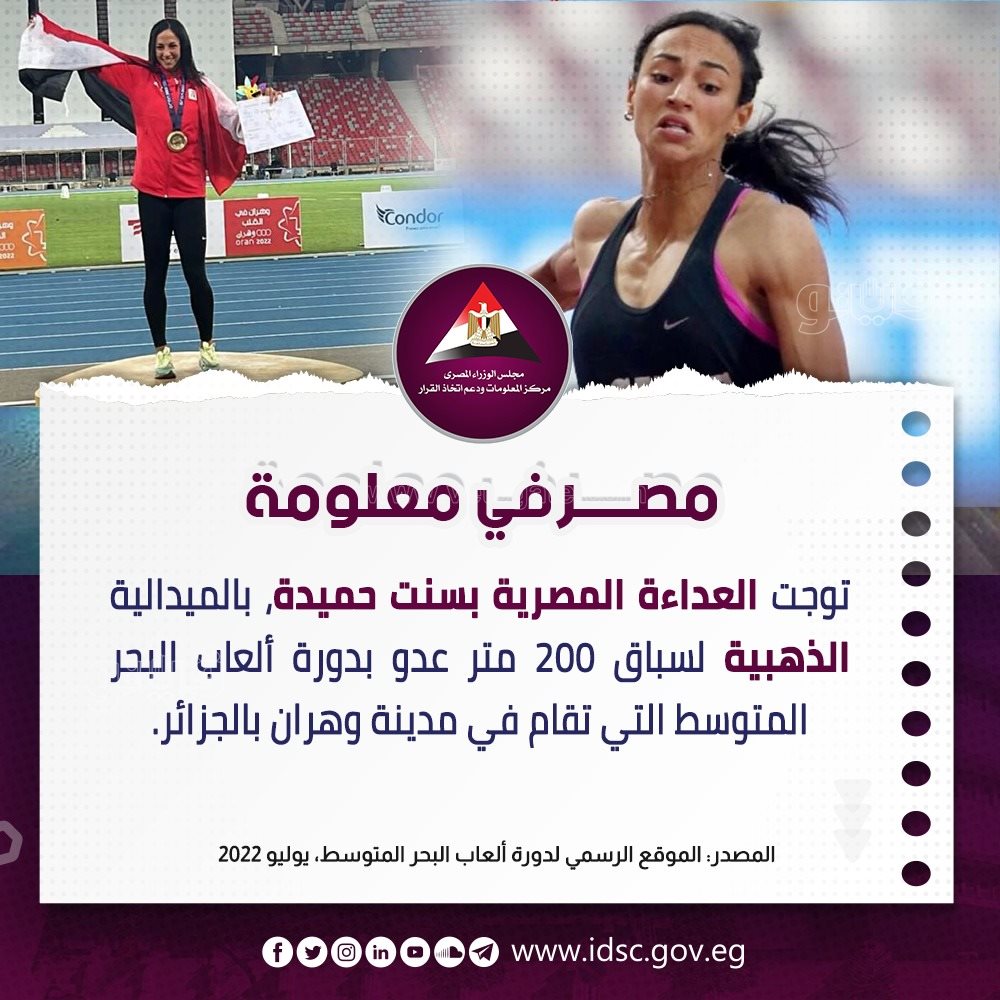 أسرع بنت في مصر.. مركز معلومات مجلس الوزراء يحتفي بالبطلة بسنت حميدة