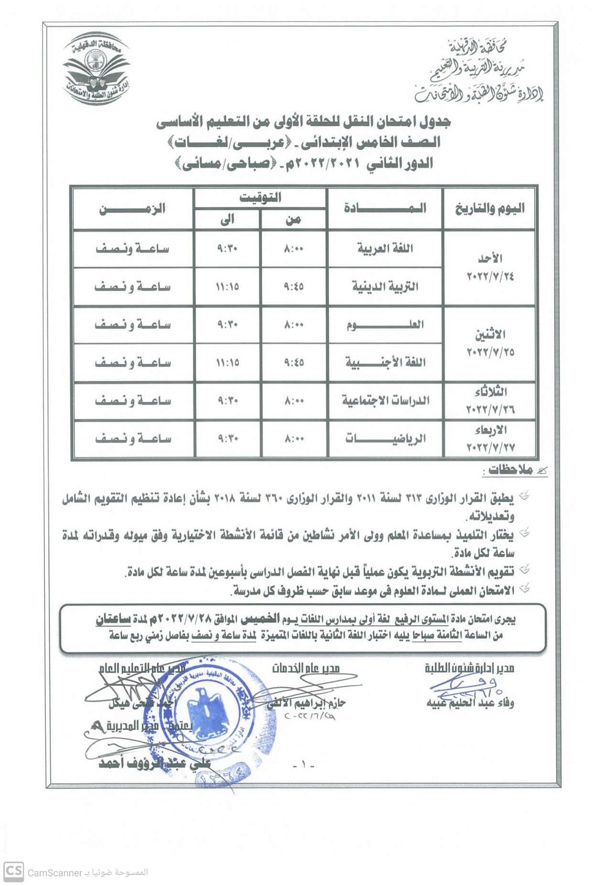 اعتمد الدكتور أيمن مختار محافظ الدقهلية اليوم الإثنين جدول الامتحانات الدور الثاني للعام الدراسي 2021 / 2022 لمراحل النقل والشهادة الإعدادية.