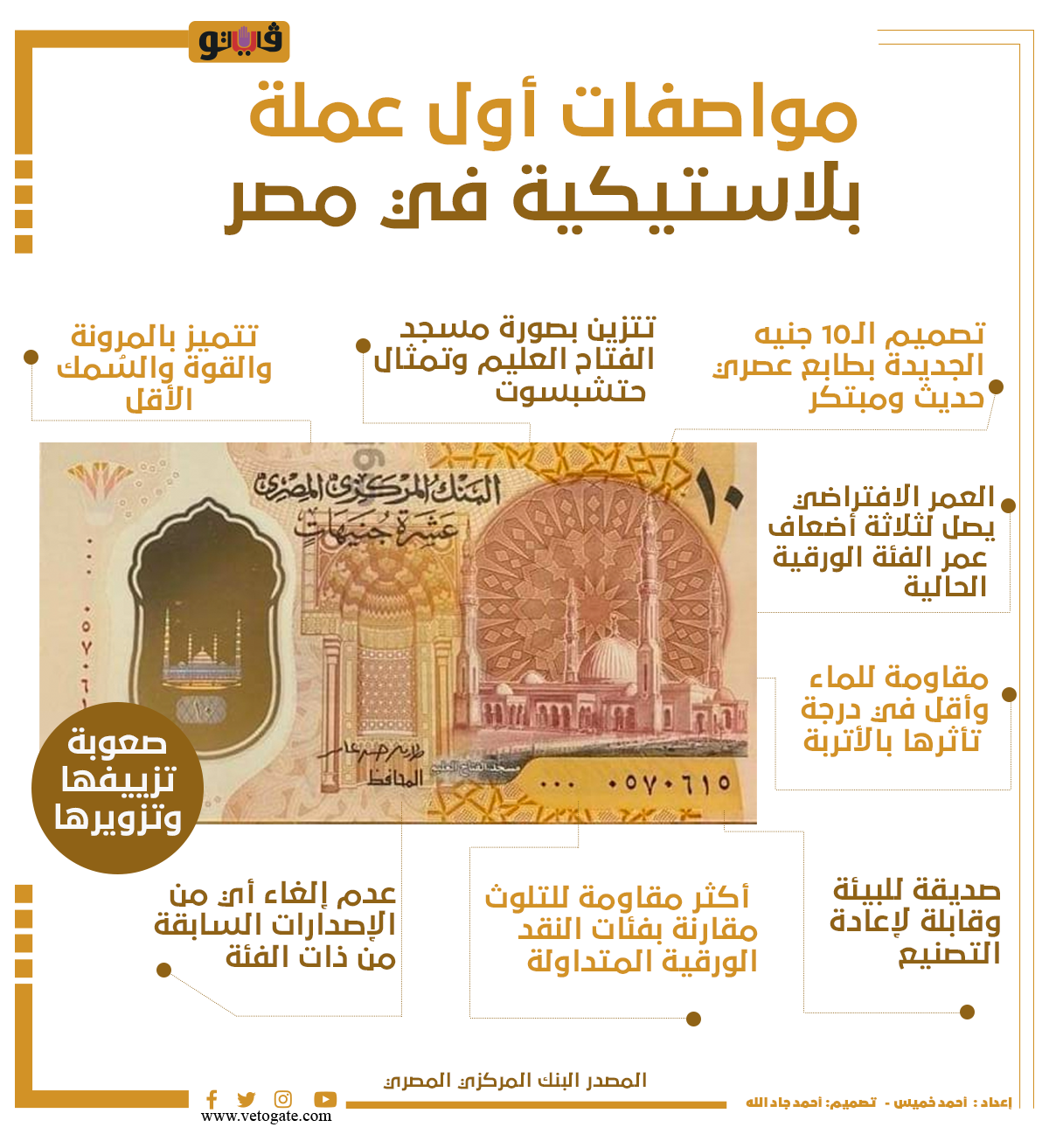 مواصفات أول عملة بلاستيكية في مصر | إنفوجراف الثلاثاء 05/يوليو/2022 - 03:00 م 7/5/2022 3:00:08 PM أول عملة بلاستيكية في مصر أحمد خميس شارك طباعة 18 حجم الخط شارك طباعة عملة بلاستيكية أول عملة بلاستيكية أول عملة بلاستيكية في مصر البنك المركزى البنك المركزى المصرى العشرة جنيهات البلاستيكية
