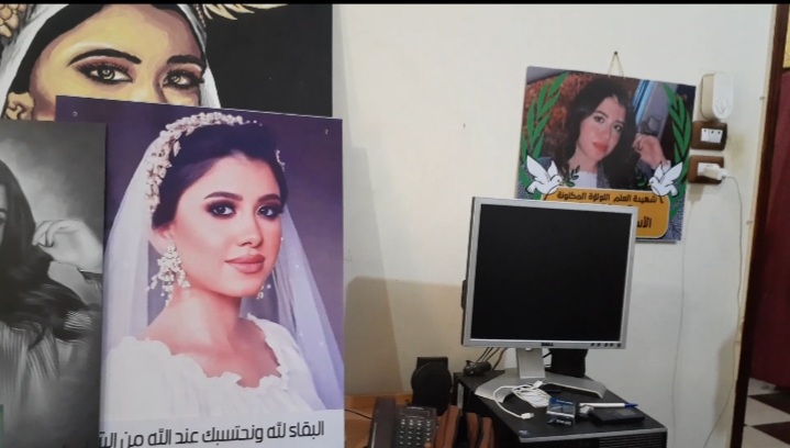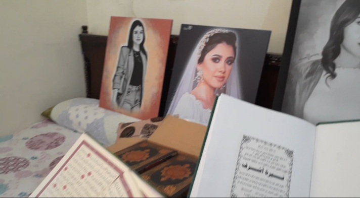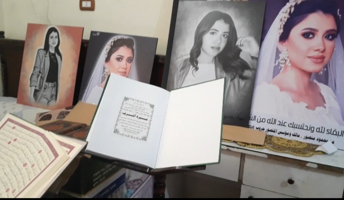 تزدحم هنا غرفتها الكائنة بمدينة المحلة الكبري في محافظة الغربية حيث جميع مقتنياتها مع صور فوتوغرافية قام زملائها بإهدائها للأسرة تخليدا لذكراها.