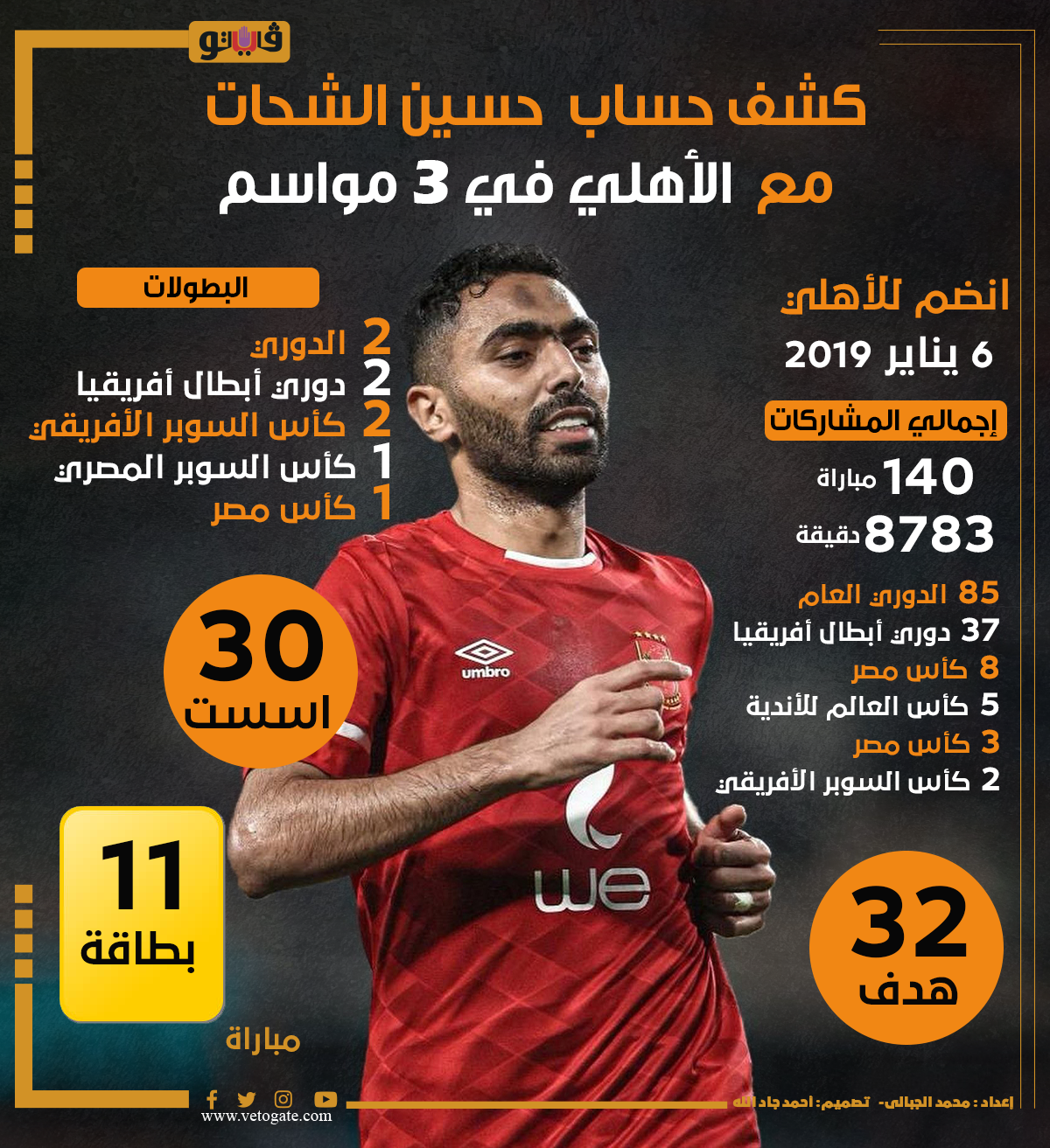 كشف حساب حسين الشحات مع الأهلي في 3 مواسم | إنفوجراف الأربعاء 06/يوليو/2022 - 01:59 ص 7/6/2022 1:59:08 AM حسين الشحات محمد الجبالى شارك طباعة 18 حجم الخط شارك طباعة دوري أبطال أفريقيا الأهلي حسين الشحات كأس السوبر المصري السوبر المصرى