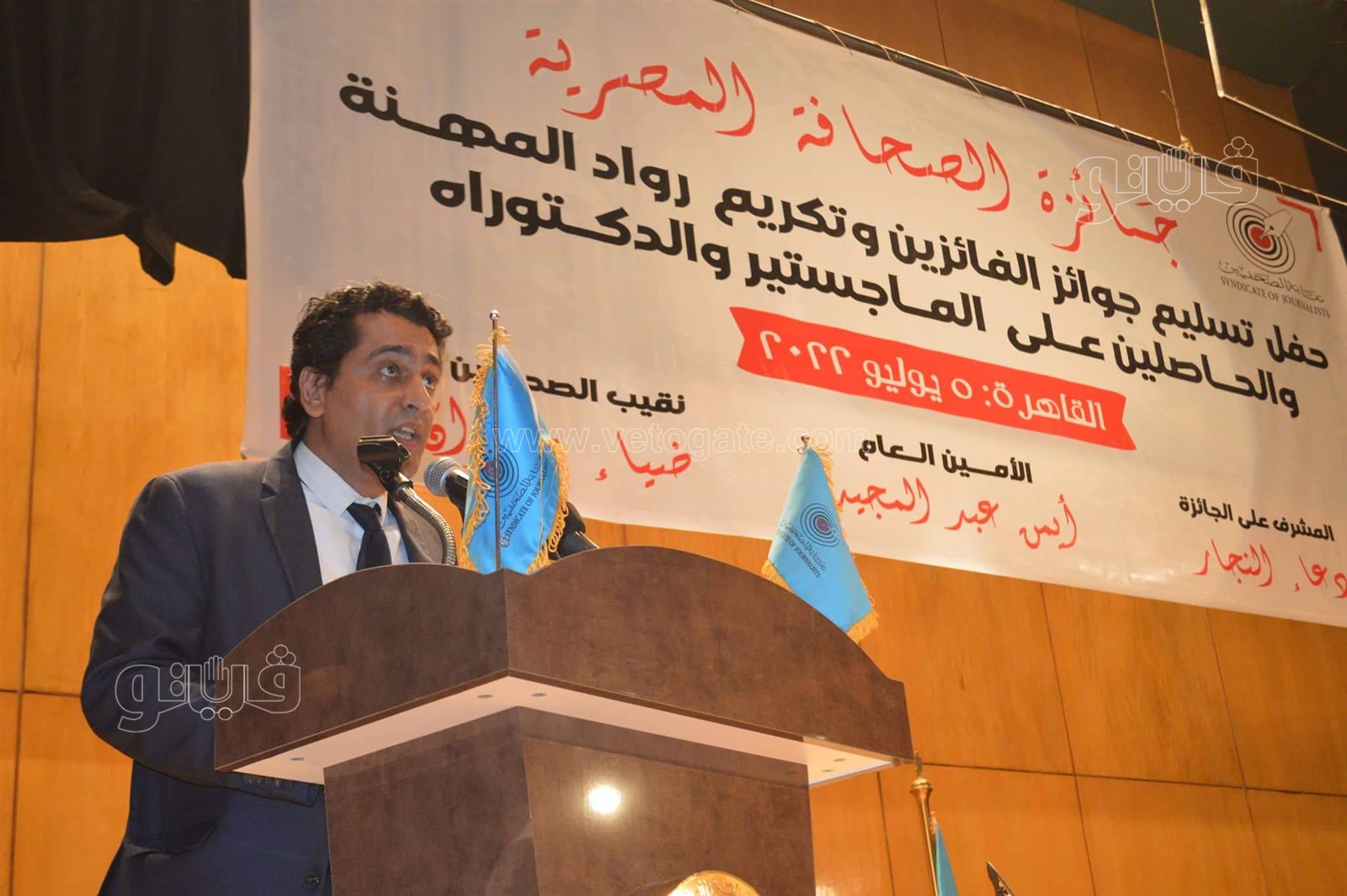 وأضاف ميري، خلال كلمته في حفل تسليم جوائز الفائزين وتكريم رواد المهنة والحاصلين على الماجستير والدكتوراه، جميعنا نلاحظ الأزمات الاقتصادية الطاحنة التي تُهدد مستقبل الصحافة في العالم كله، مشيرًا إلى أن هذه الجائزة تُساعد الزملاء على تقديم أفضل ما لديهم من أجل التكريم في بيتهم.