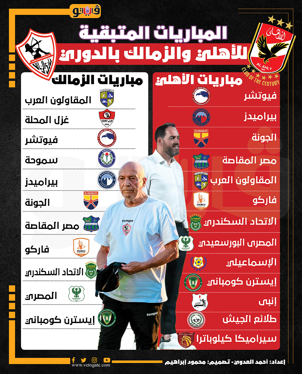 المباريات المتبقية للأهلي والزمالك بالدوري| إنفوجراف الخميس 07/يوليو/2022 - 12:16 م 7/7/2022 12:16:32 PM الأهلى والزمالك أحمد العدوي شارك طباعة 18 حجم الخط شارك طباعة الزمالك الدوري الممتاز الأهلي اخبار الأهلي اخبار الزمالك اخبار الرياضة