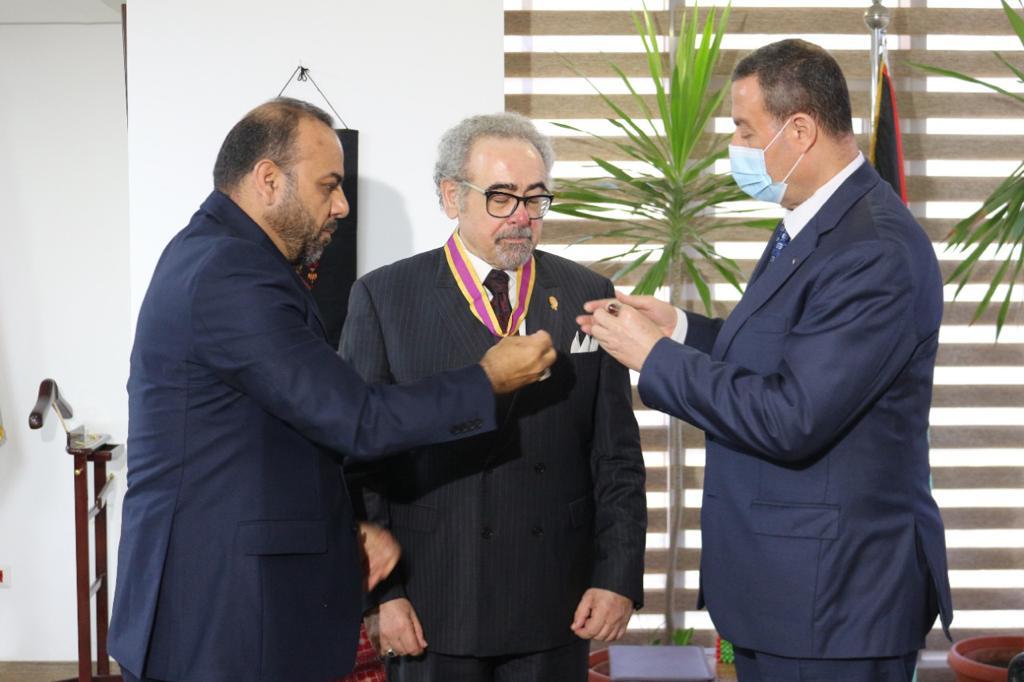نيابة عن أبو مازن.. السفير الفلسطيني بالقاهرة يمنح رئيس اتحاد كتاب مصر وسام الثقافة والفنون