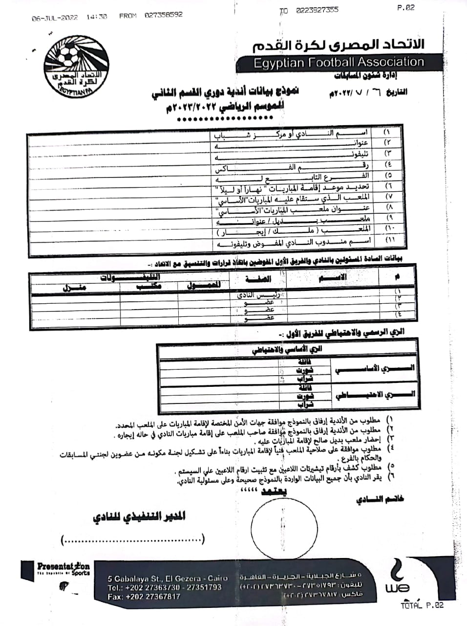 طالب اتحاد للكرة، الفروع التابعة بإخطار الفرق المشاركة في دوري القسم الثاني بالموسم الجديد بإخطارهم بعدد من المعلومات استعدادا للموسم الجديد.