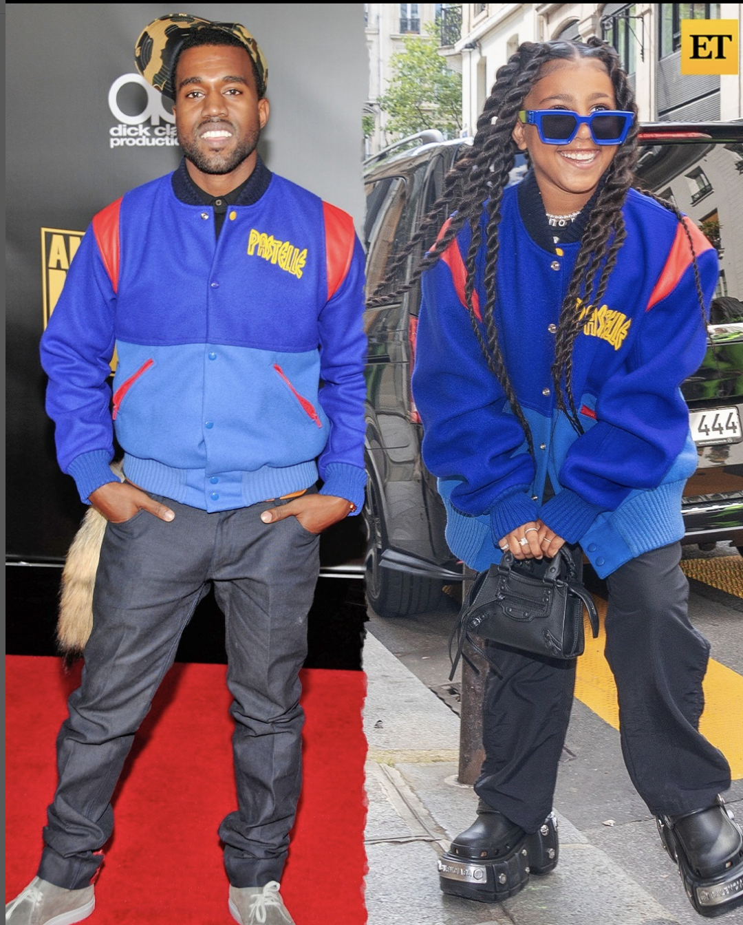 وارتدت نورث سترة زرقاء ملكية من ماركة باستيل كان والدها المغني الشهير كانييه ويست ارتداها من قبل في أحد حفلات توزيع الجوائز عام ٢٠٠٨، ونسقت نورث السترة مع نظارة شمسية متطابقة من نفس اللون وبنطال أسود وحذاء ضخم أسود من تصميم والدها.