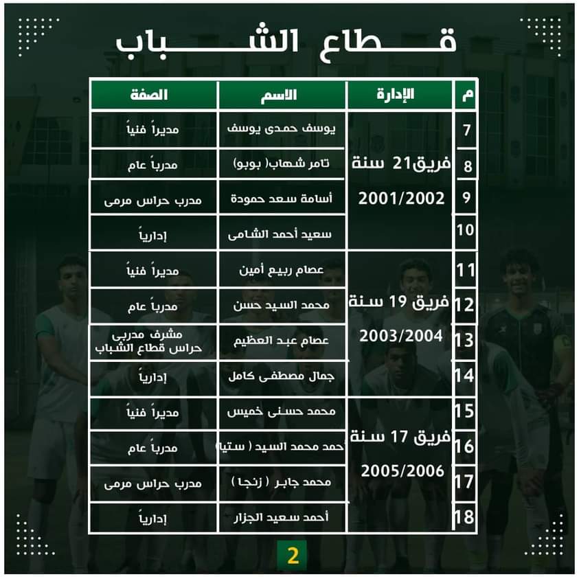 اعتمد مجلس إدارة نادي الاتحاد السكندري برئاسة محمد مصيلحى توصية لجنة الكرة برئاسة أحمد عبد المجيد نائب رئيس مجلس الإدارة وعضوية محمد سلامة ومحمد البحيرى أعضاء مجلس الإدارة والكابتن إمام محمدين رئيس قطاع الناشئين بشأن التشكيل الجديد للأجهزة الفنية والإدارية لقطاع الناشئين لكرة القدم للموسم الرياضى 2022_2023 وذلك على النحو التالى: -