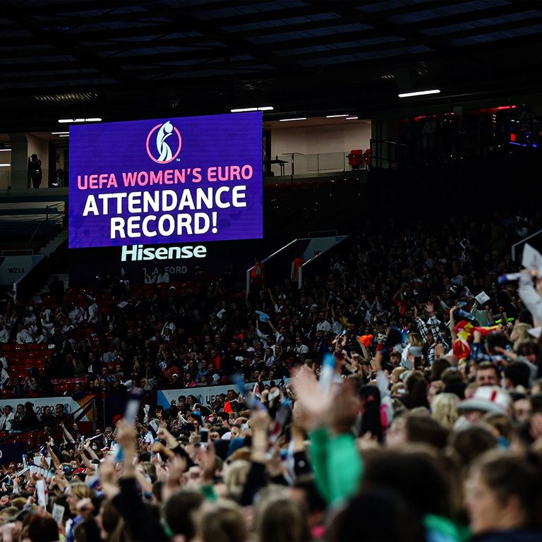 ويعد هذا الحضور الأكبر في تاريخ البطولة لكنه لا يرقى لأرقام قياسية أخرى بالنسبة لمباريات كرة القدم النسائية التي شهدتها القارة العجوز؛ ففي مباراة ودية أقيمت بين سيدات إنجلترا وألمانيا في العام 2019 كان عدد الجماهير 77.768 متفرجا.