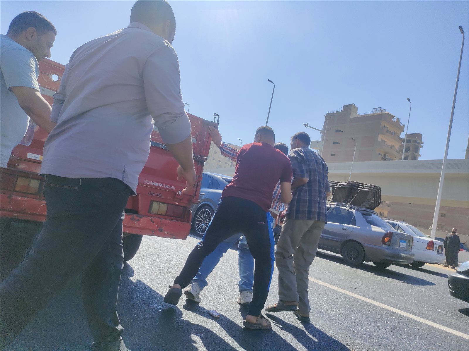 إصابة مواطن في حادث تصادم على دائري المنيب | صور