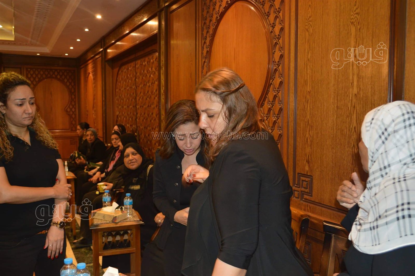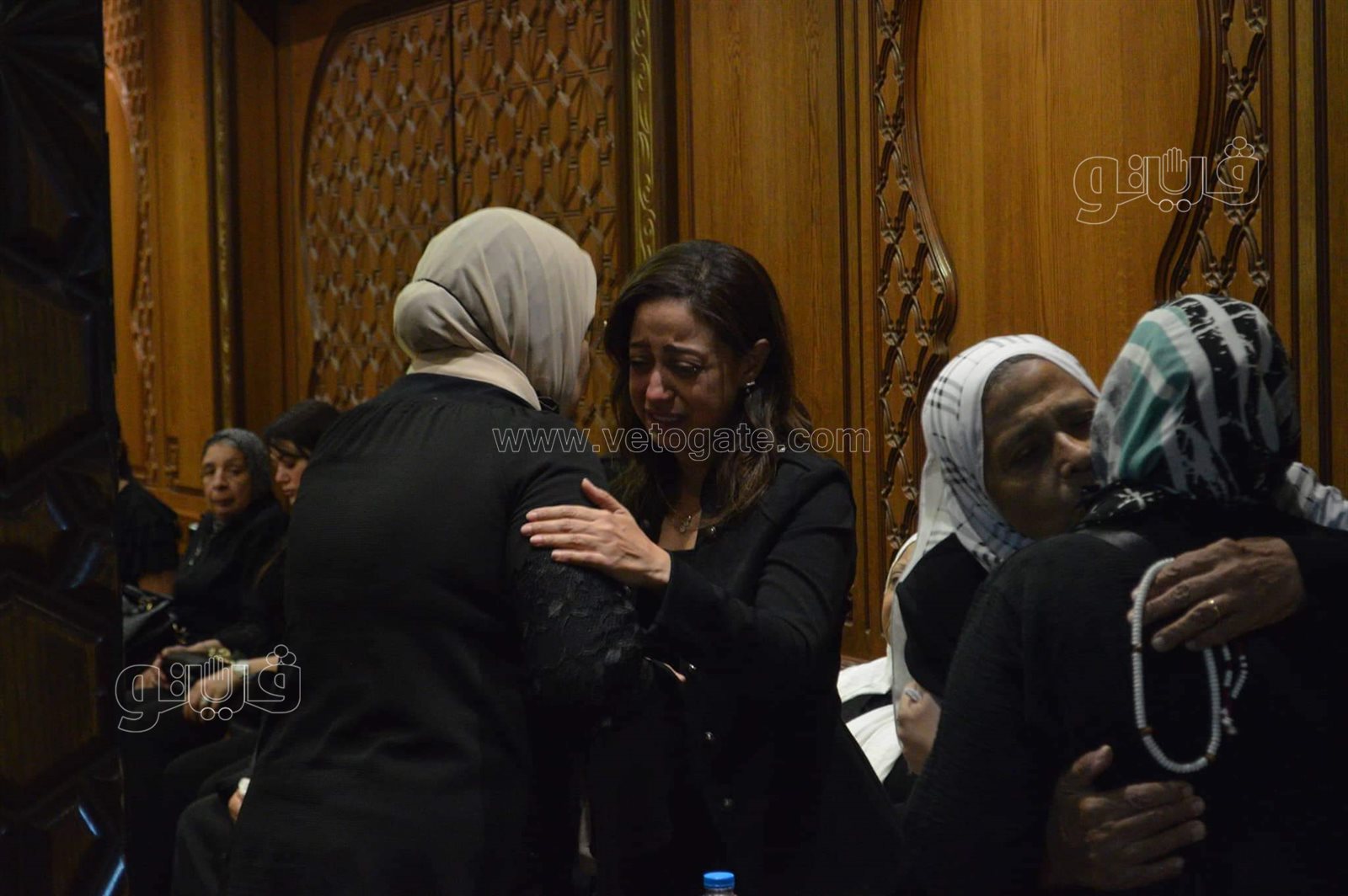 حضرت الفنانة مي كساب والموسيقار سليم سحاب والمخرج خالد جلال رئيس قطاع الإنتاج الثقافي بوزارة الثقافة المصرية عزاء والدة المطربة ريهام عبد الحكيم.