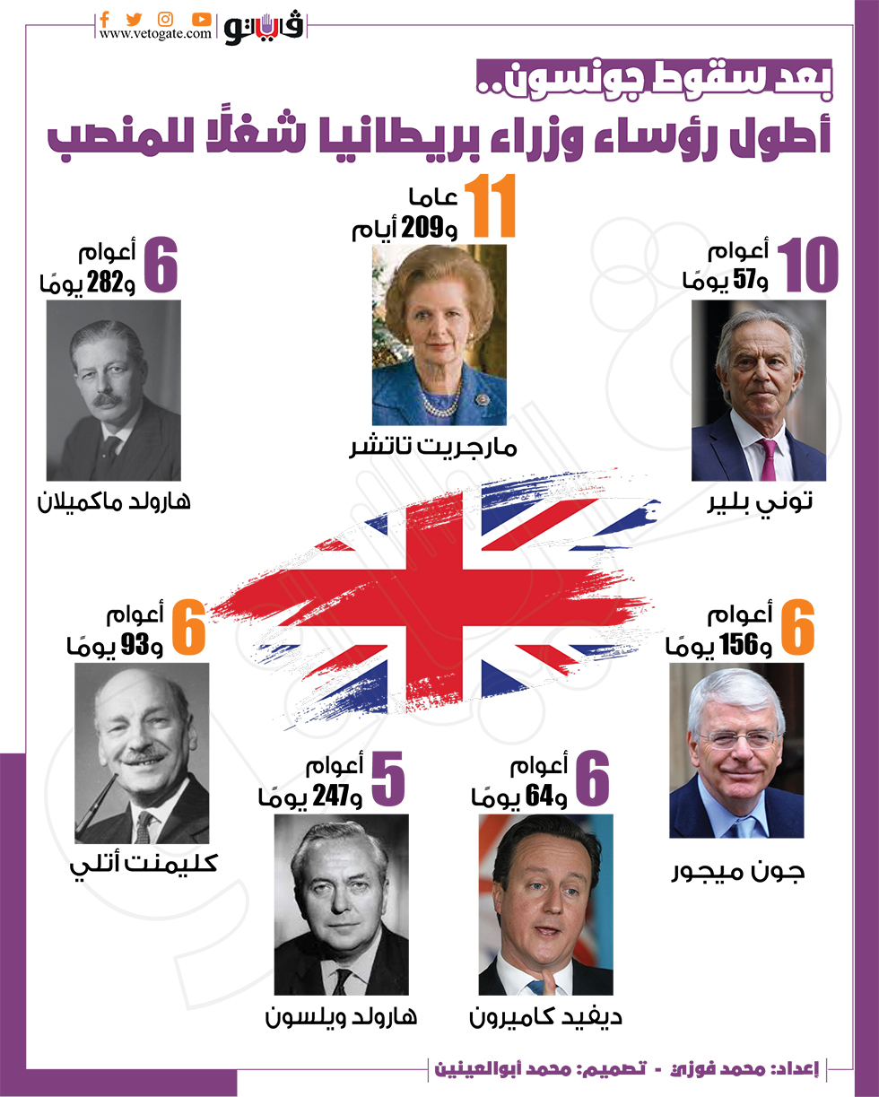 بعد سقوط جونسون.. أطول رؤساء وزراء بريطانيا شغلا للمنصب | إنفوجراف السبت 09/يوليو/2022 - 08:12 م 7/9/2022 8:12:42 PM بعد سقوط جونسون محمد فوزى شارك طباعة 18 حجم الخط شارك طباعة بريطانيا رئيس وزراء بريطانيا استقالة رئيس وزراء بريطانيا بوريس جونسون استقالة بوريس جونسون