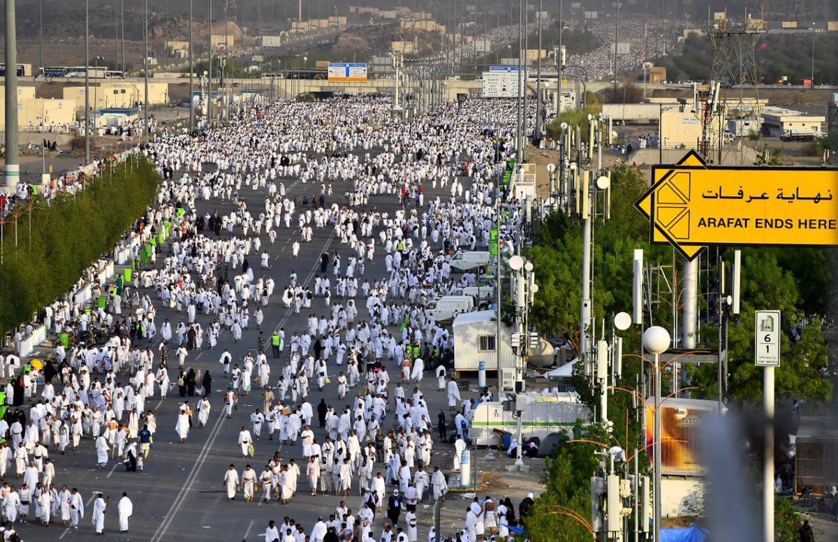 بالتزامن مع غروب الشمس يبدأ حجاج بيت الله الحرام النزول من جبل عرفات للتوجه إلى المزدلفة عبر الممشى الطويل.