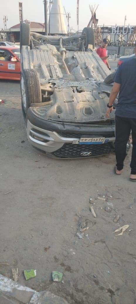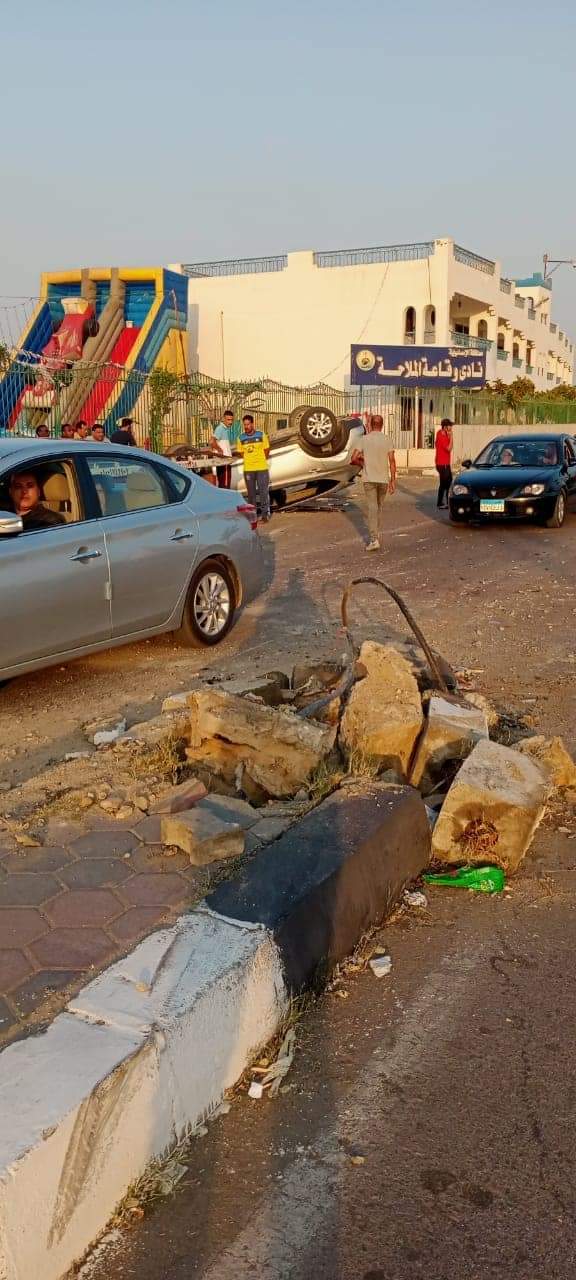 انقلاب سيارة ملاكي أمام شاطئ الملاحة بالإسماعيلية| صور