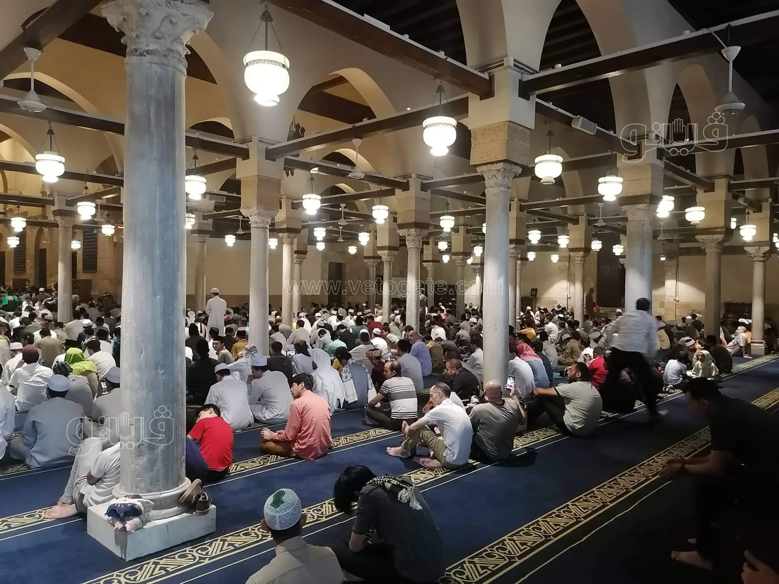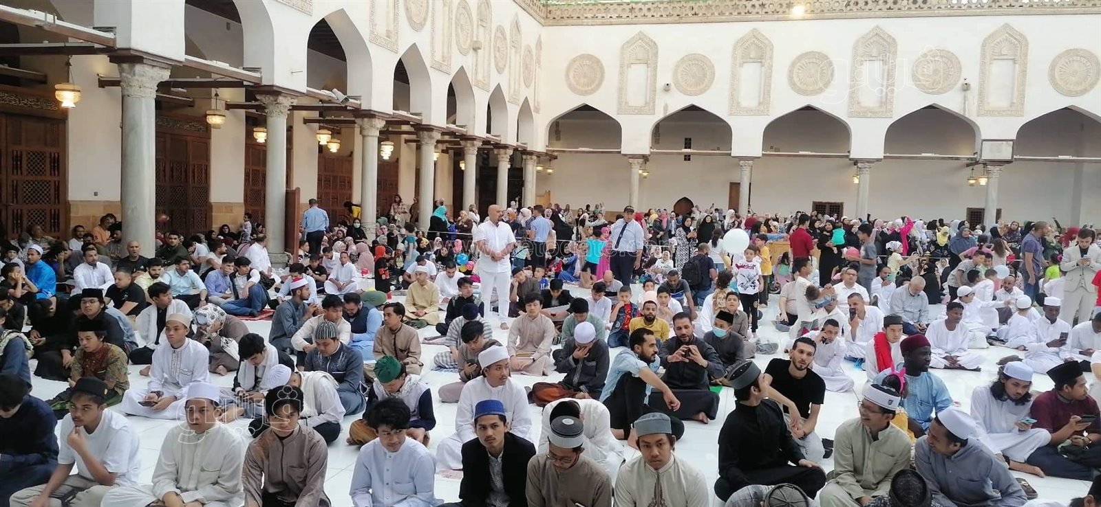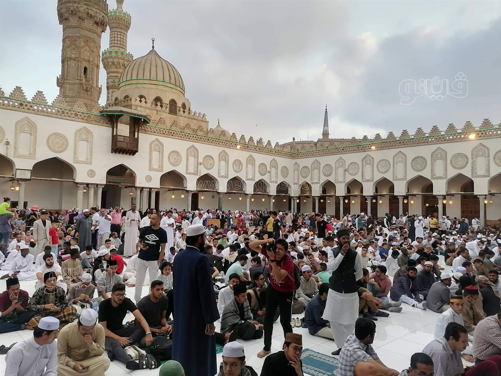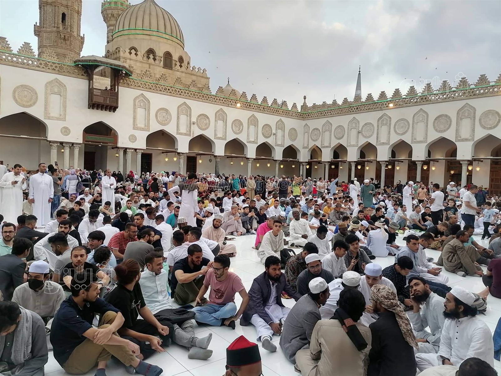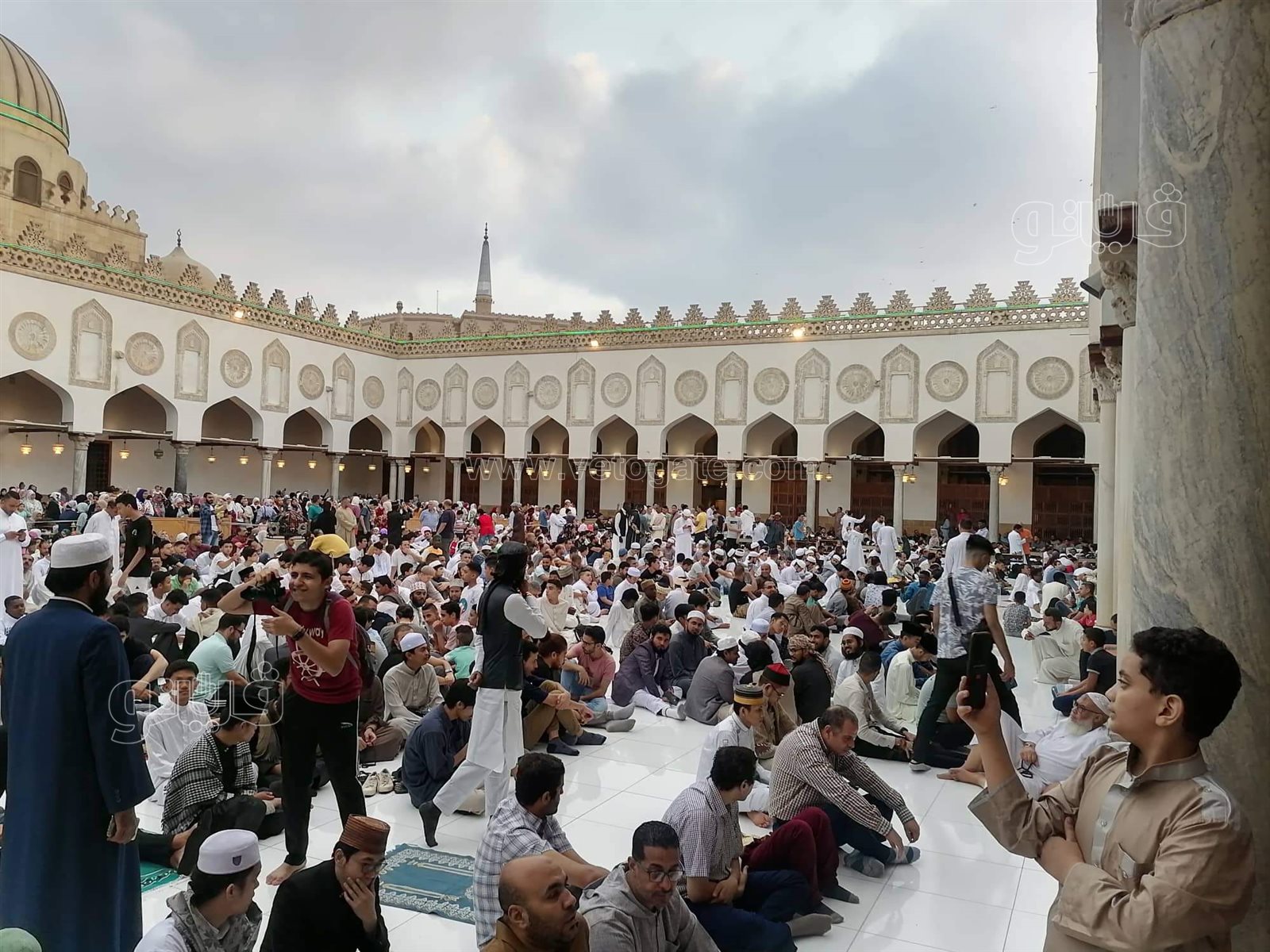توافد المئات من المصلين على ساحة الجامع الأزهر من أجل أداء صلاة عيد الأضحى المبارك، وسط أجواء من السعادة والاحتفالات الخاصة بين جموع المصلين.