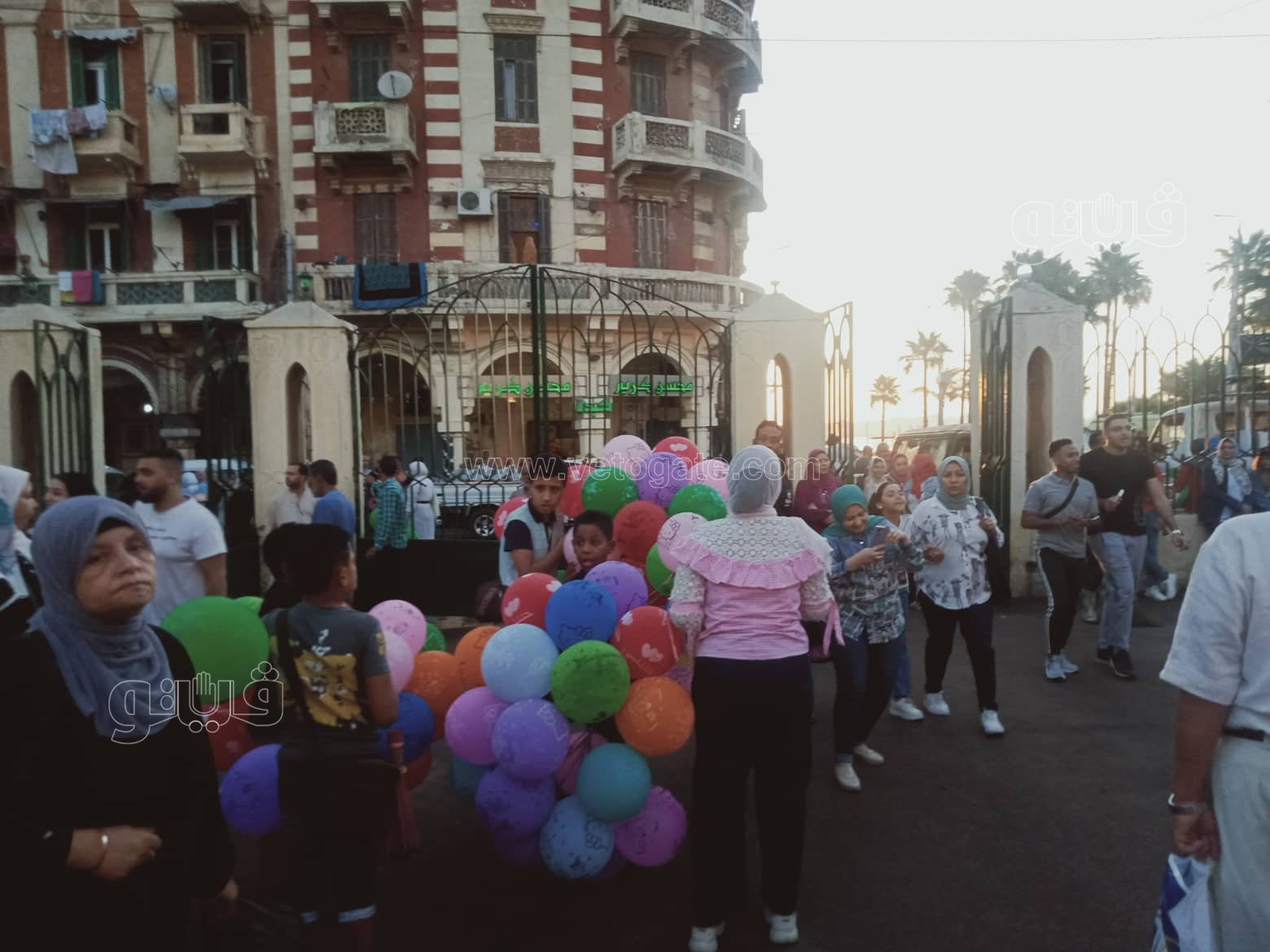 بالبالونات الحمراء.. إقبال كبير على ساحات مسجد أبو العباس بالعباسية