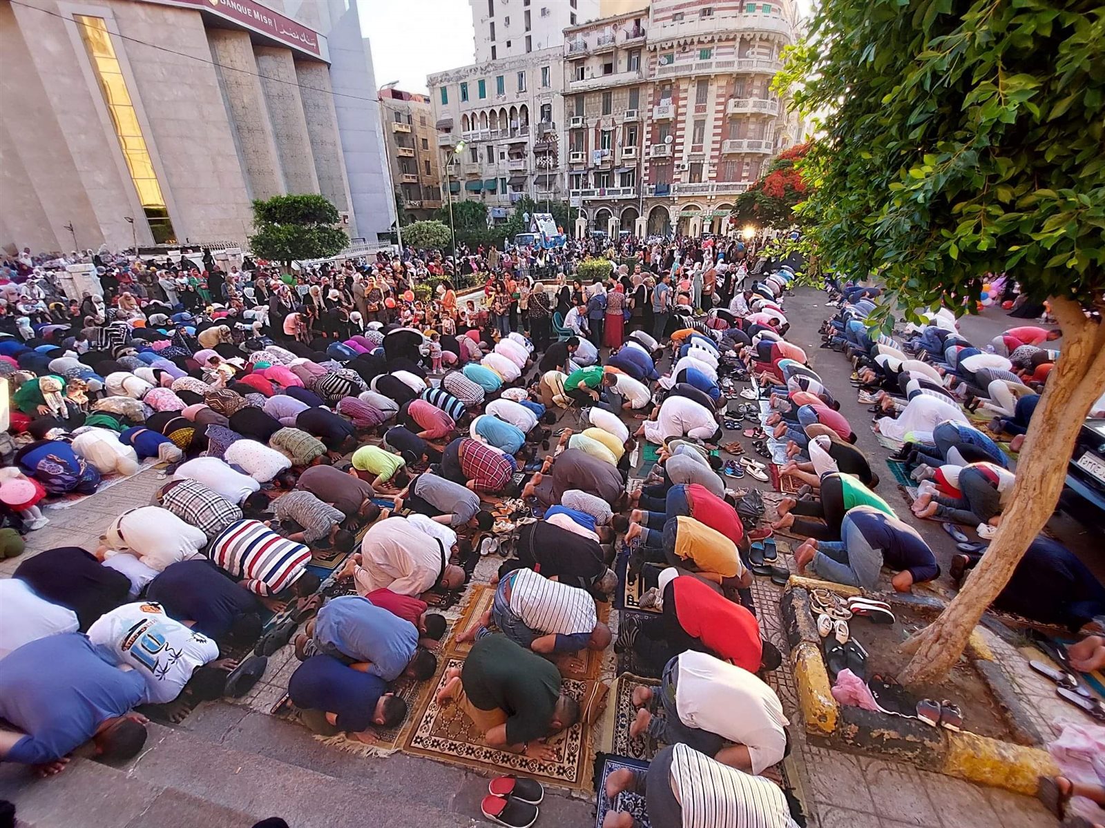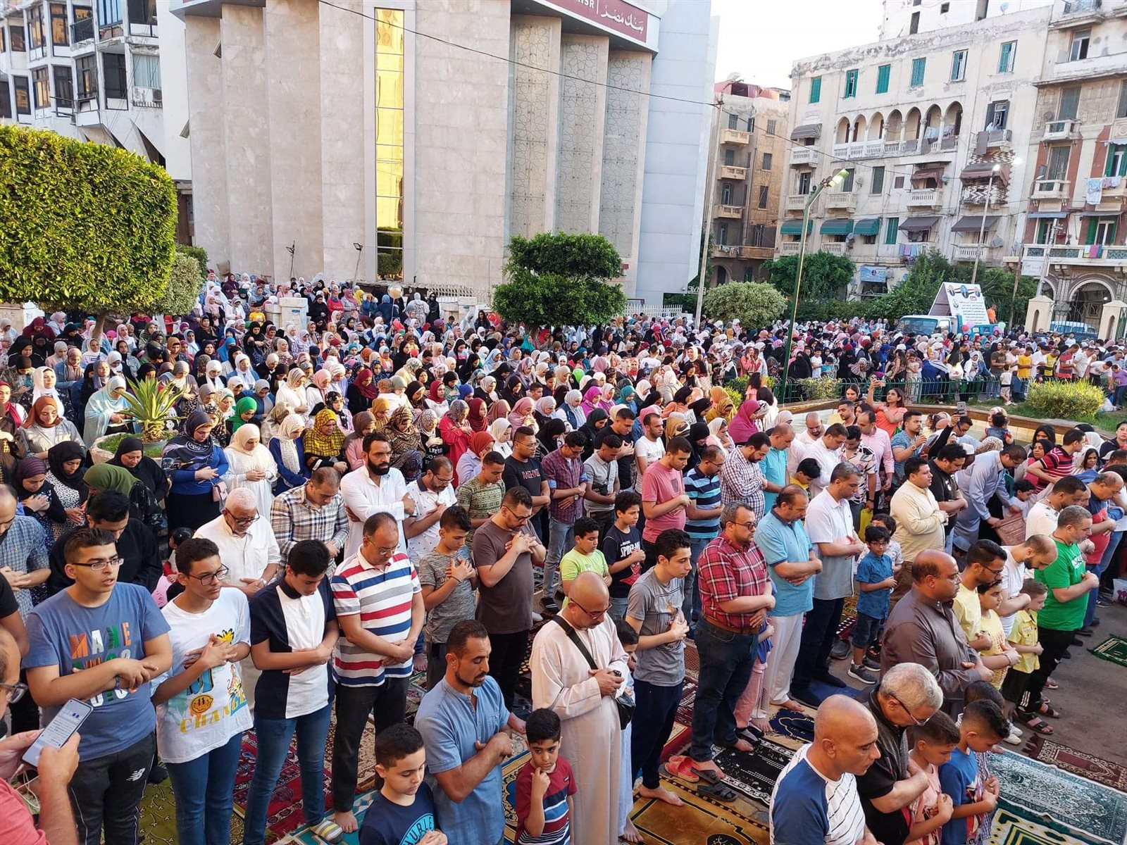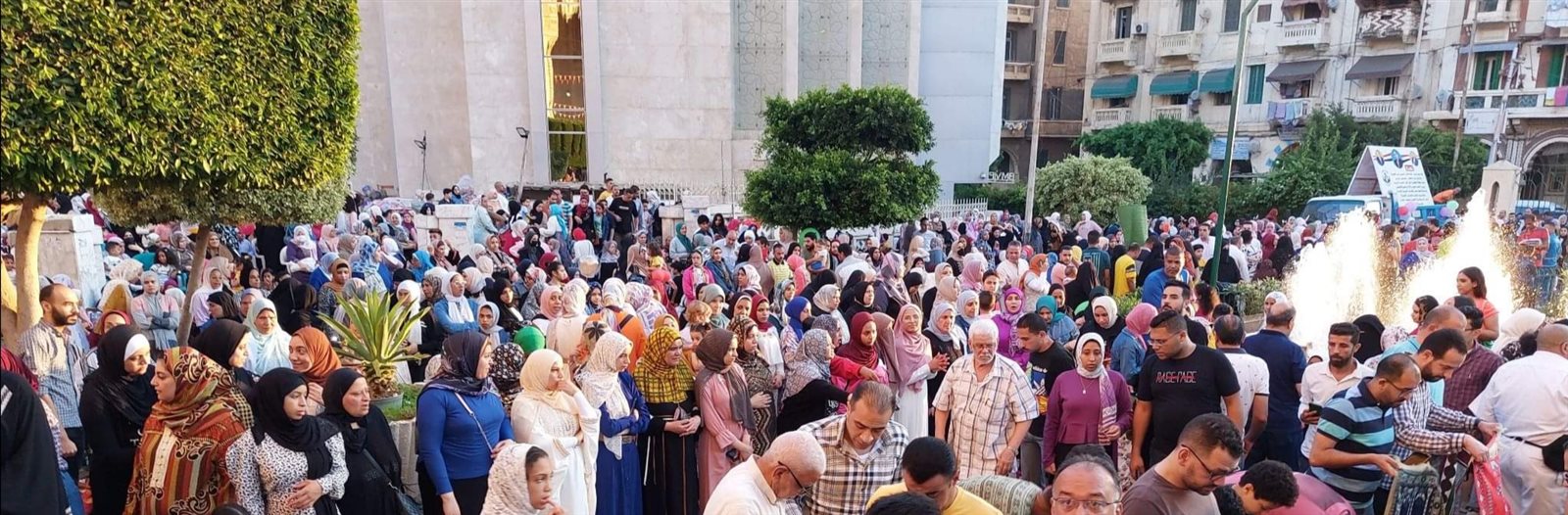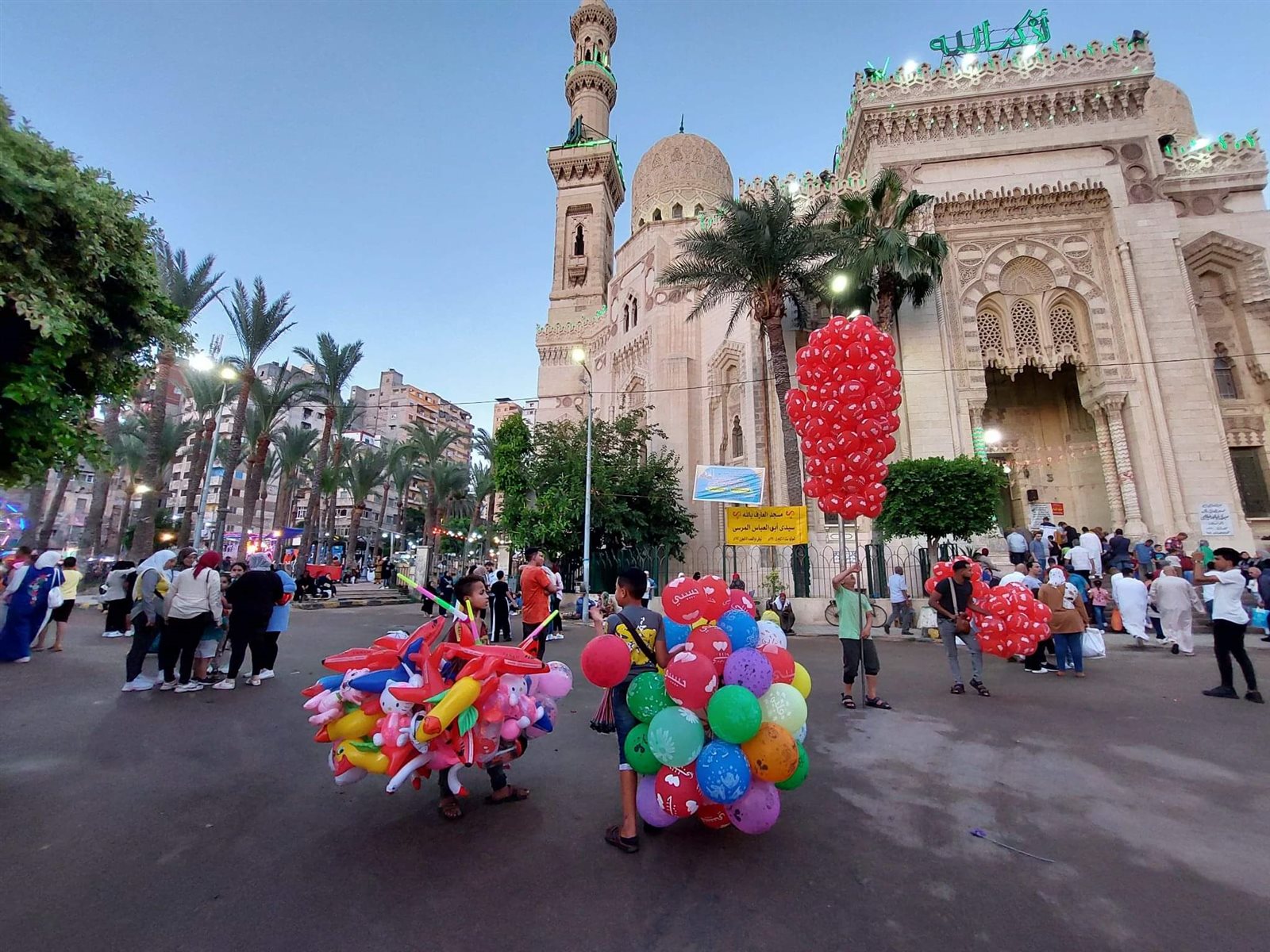 وشهدت ساحة مسجد المرسي أبو العباس زحامًا شديدًا وسط اختلاط النساء بالرجال خلال صلاة العيد وانتشار باعة ألعاب الأطفال بمحيط المسجد.