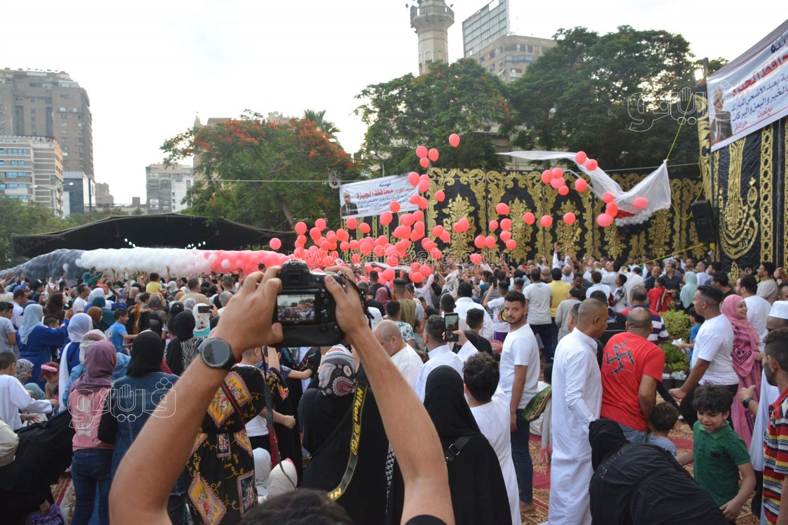 من الجامع الأزهر بمحافظة القاهرة إلى مسجد مصطفى محمود في الجيزة، كانت الفرحة تنساب بين المصلين فسرعان ما تنتشر وتعم الأجواء فلا تفرق بين كبير أو صغير، فهذا الرجل في جلبابه الجديد يأكل الآيس كريم بعد أن انتهى من أداء صلاة عيد الأضحى المبارك، وهذا الصغير يقبض على بالونه الملون خشية أن يخطفه الهواء فلا يتمكن من استعادته مرة أخرى، وهؤلاء يحرصون على التقاط الصور التذكارية قبل العودة إلى المنزل.