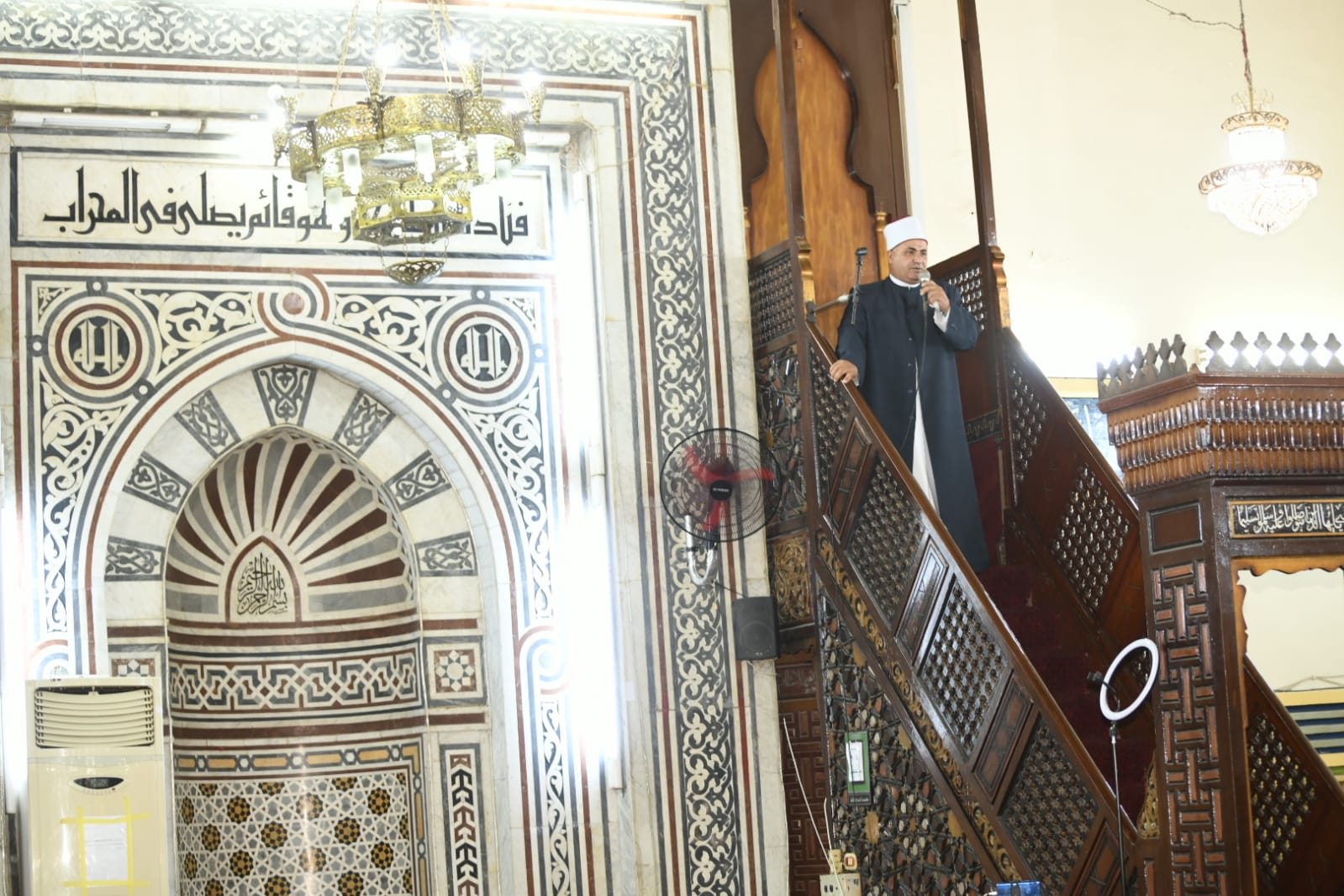 وقد ألقى الدكتور محمد حسين مدير الدعوة بمديرية الأوقاف خطبة عيد الأضحى المبارك تحدث فيها عن فضل الأعياد في الإسلام ودورها في الترويح عن النفس، وعن عالمية الرسالة المحمدية وحرص النبي "صلى الله عليه وسلم" على أمته والناس أجمعين وأن جميع الأنبياء والمرسلين دينهم واحد وهو الدعوة إلى عبادة الله وحده، كما تحدث أيضًا عن أعمال يوم النحر بالنسبة للحجاج وبالنسبة لغير الحاج ، وأن من درس يوم النحر الثقة في الله وأن الله منجز وعده، وأن شعيرة الأضحية سنة اتفقت عليها جميع الشرائع لما فيها من معاني التراحم والتكافل والإنسانية.
