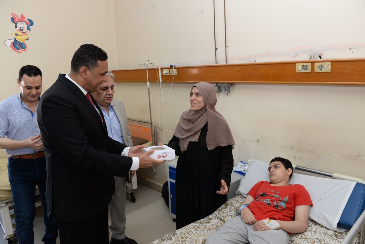 والتقي بالأطفال وقدم لهم الهدايا بمناسبة العيد، وأيضًا قام بزيارة مستشفى التأمين الصحي بسندوب لتقديم التهنئة إلى المرضى واطمأن على صحتهم وقدم لهم الهدايا.