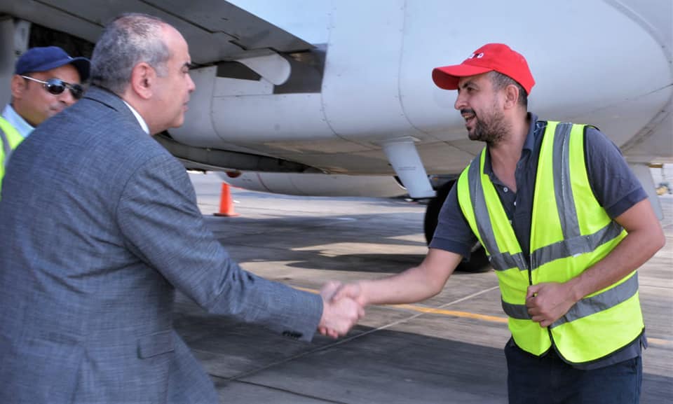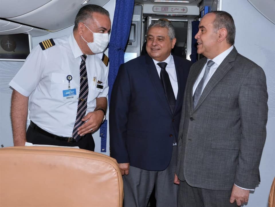 ورافق وزير الطيران خلال الجولة الطيار منتصر مناع نائب وزير الطيران المدنى وباسم عبد الكريم مساعد وزير الطيران للعلاقات الدولية والإعلام والطيار عمرو أبو العينين رئيس الشركة القابضة لمصر للطيران والطيار عمرو نبيل رئيس مصر للطيران للخطوط الجوية وأحمد شاهين رئيس مصر للطيران للخدمات الأرضية.